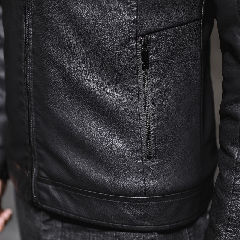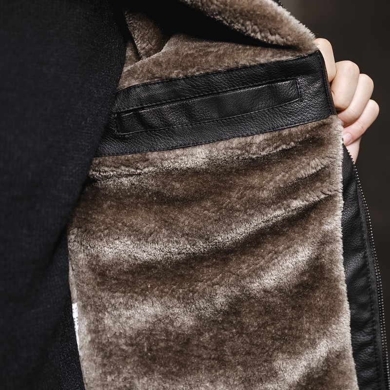 Leather and wool men's fur collar leather men's tide thickened plus velvet lapel leather jacket winter jacket slim locomotive suit