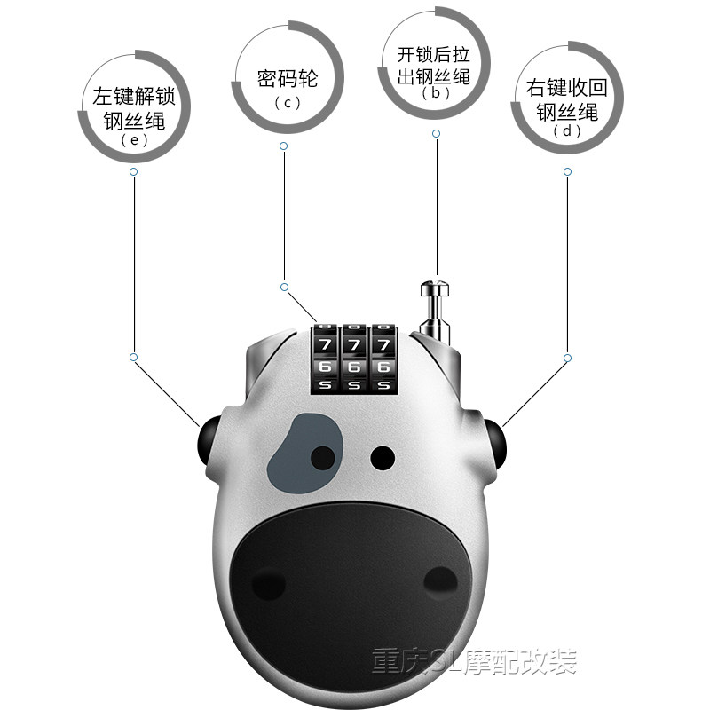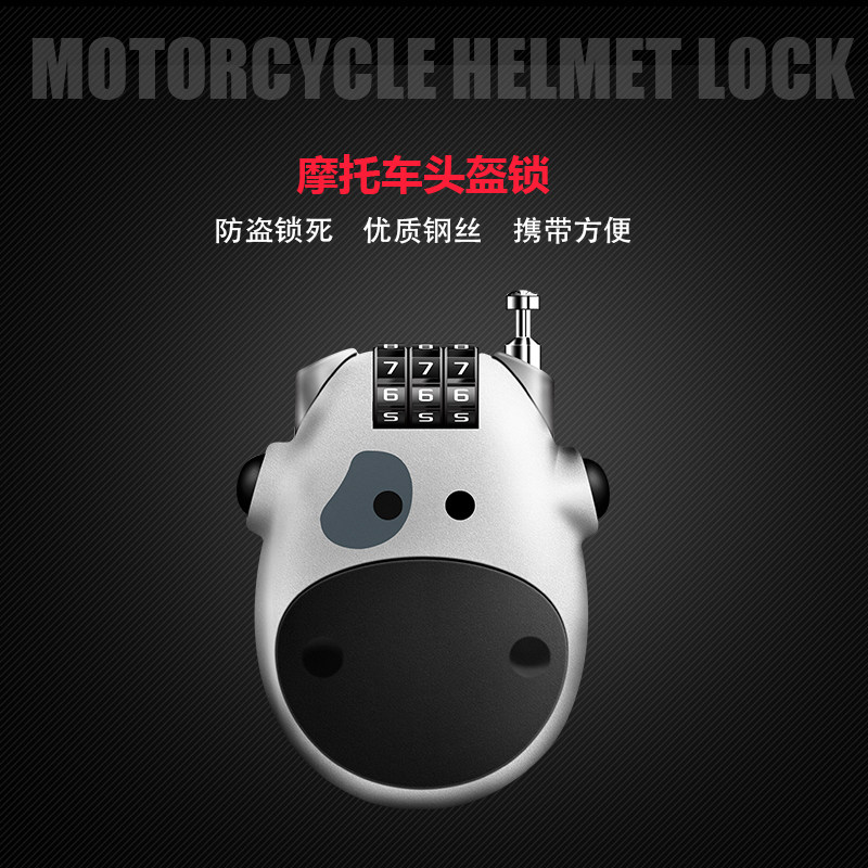 Small White Bull Cute Safety Helmet Lock Small Black Cow Cute Safety Helmet Lock
