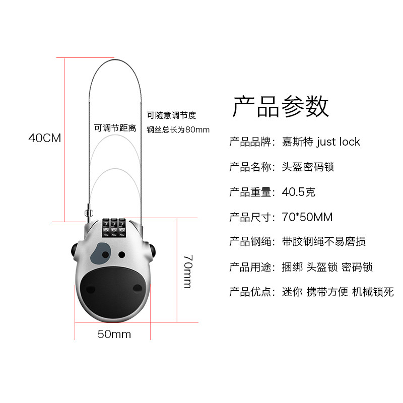 Locomotive Safety Helmet Lock Anti-theft Code Lock Accessories Locomotive Mountaineering Bike Electric Vehicle Portable Wire Lock