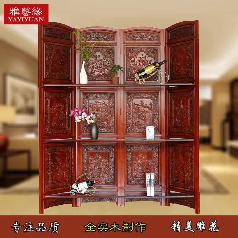 Dongyang wood carving living room entrance mobile screen partition Solid wood screen folding Chinese carved Feng Shui home occlusion