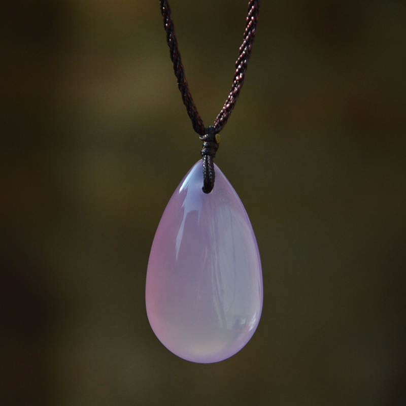 Shaanxi Xi'an ice flowers hibiscus jade drop shaped pendant blue field jade powder jade medullary crystal girl necklace ornament