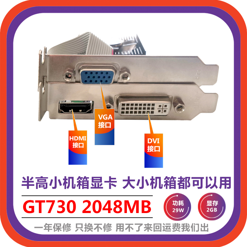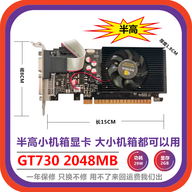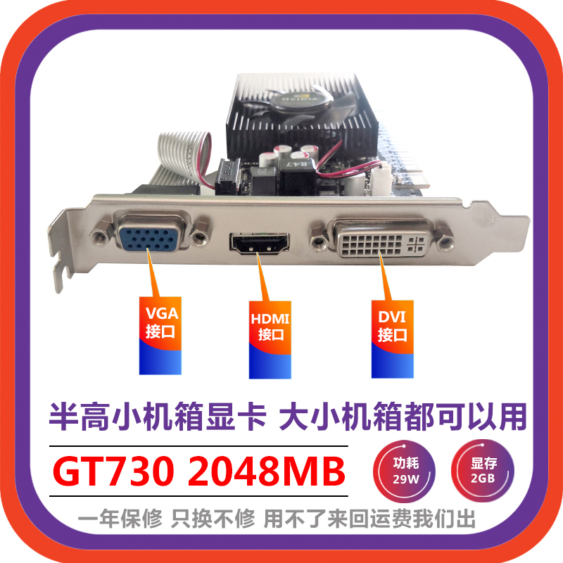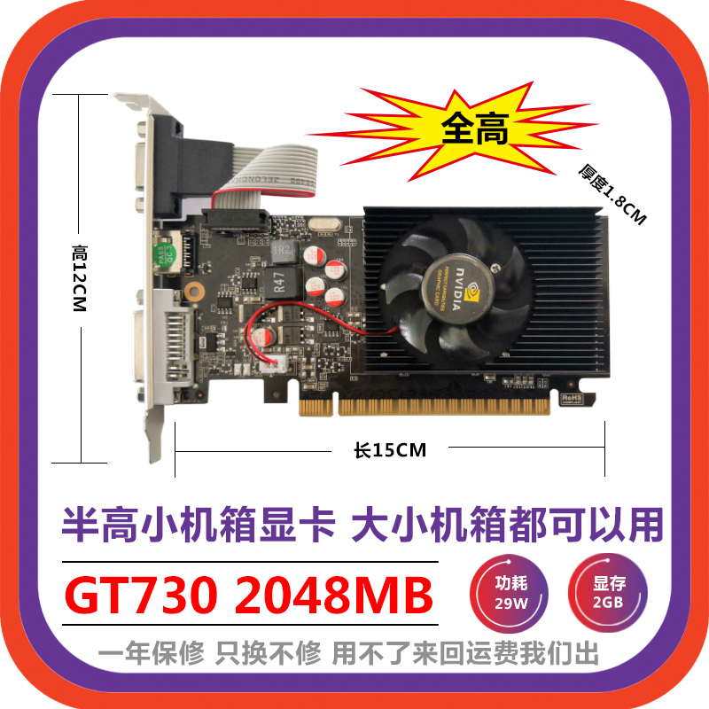 New GT730 2G DDR3 small main case brand machine independent high-definition graphics card knife card server half-height graphics card