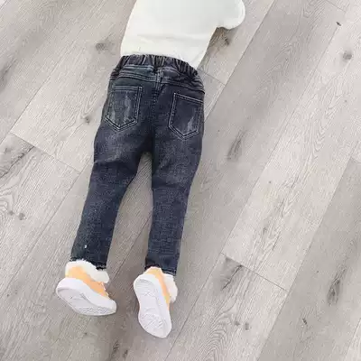 Orange juice home girls plus velvet jeans baby pants autumn and winter 2019 new children's winter thickened warm pants