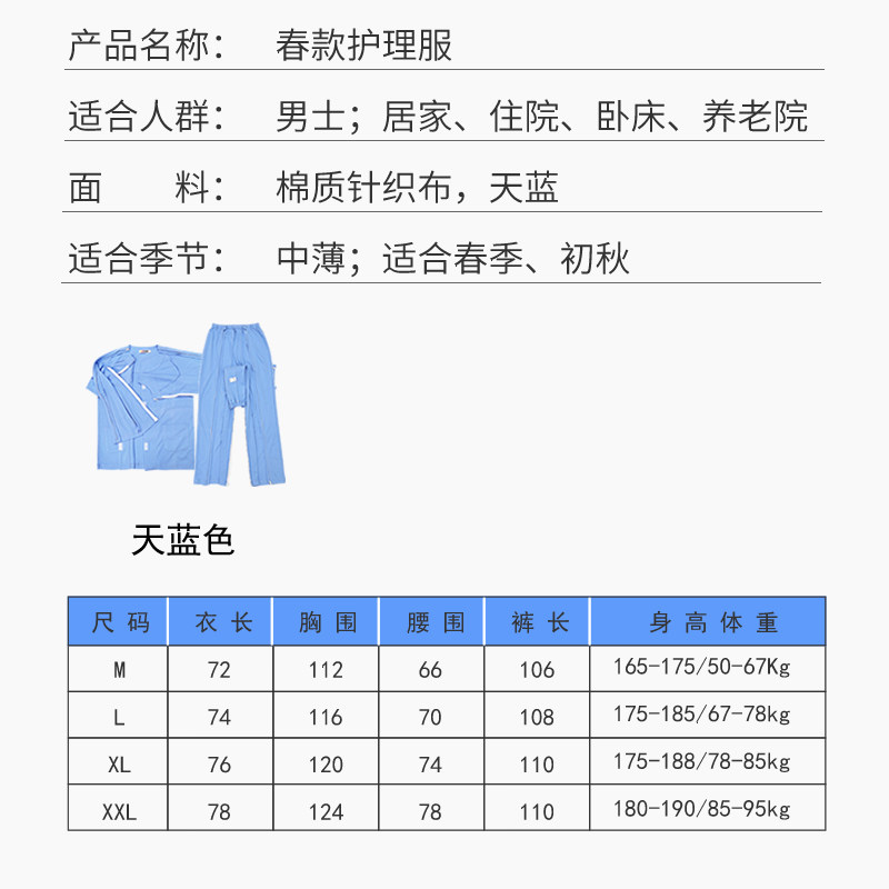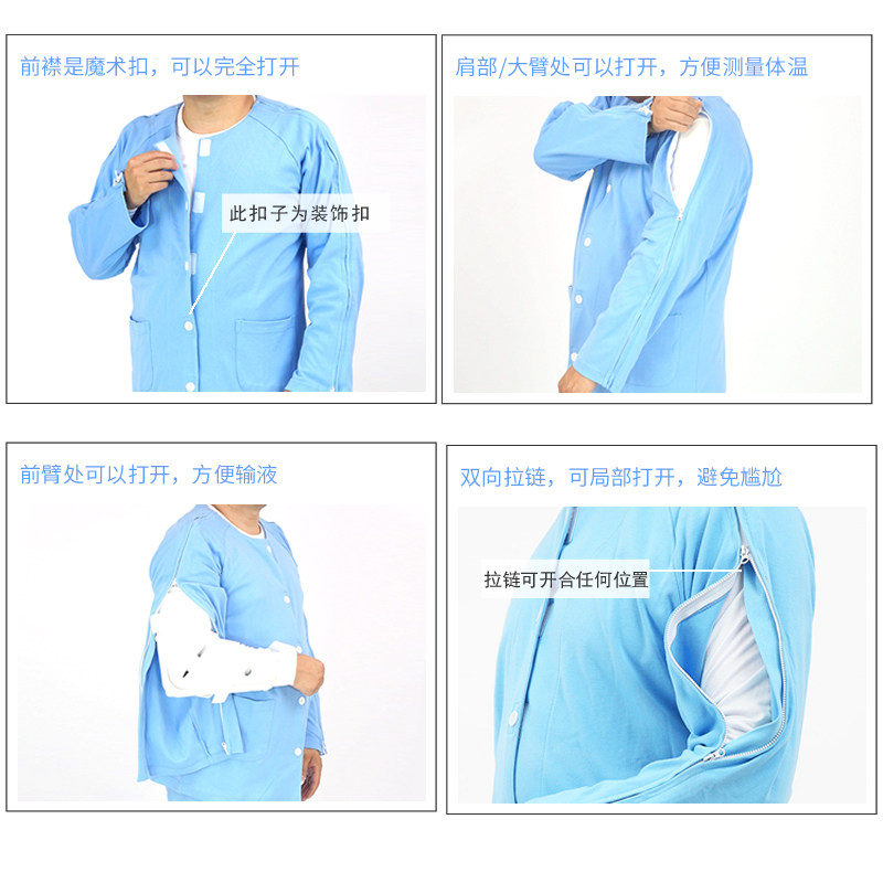 Nursing clothes easy to wear and take off zipper type sick number clothes fracture patients men and women bedridden paralyzed elderly home spring and autumn pajamas