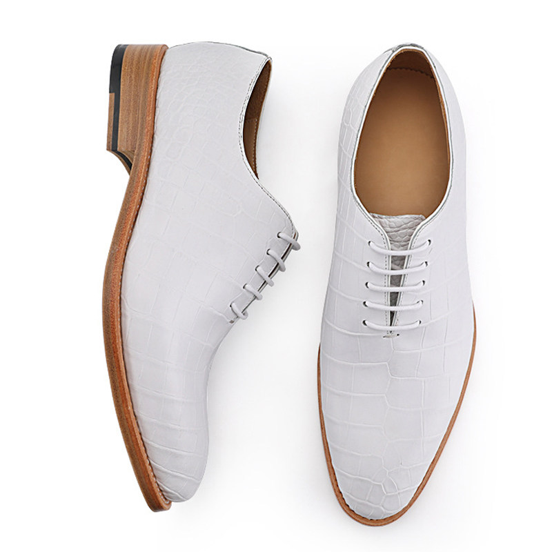 High-end handmade Himalayan white Thailand imported crocodile leather men's shoes belly shoes genuine leather dress Goodyear