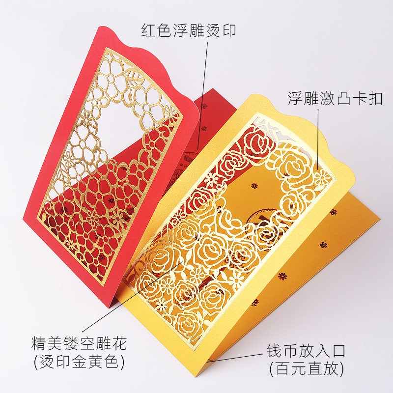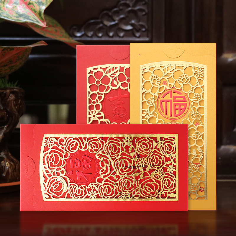 2022 high-grade exquisite red envelope high-end personality creative Chinese hollow carved thousand yuan long red envelope bag