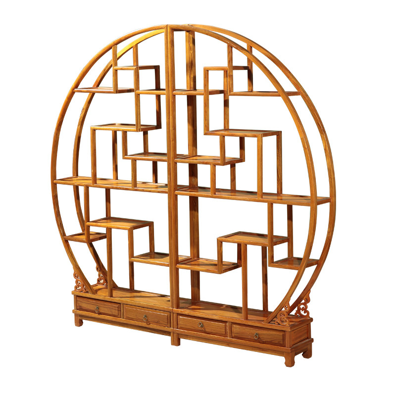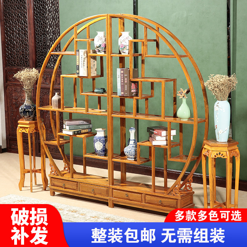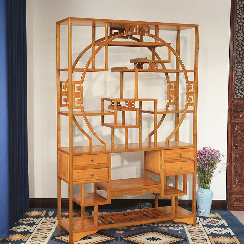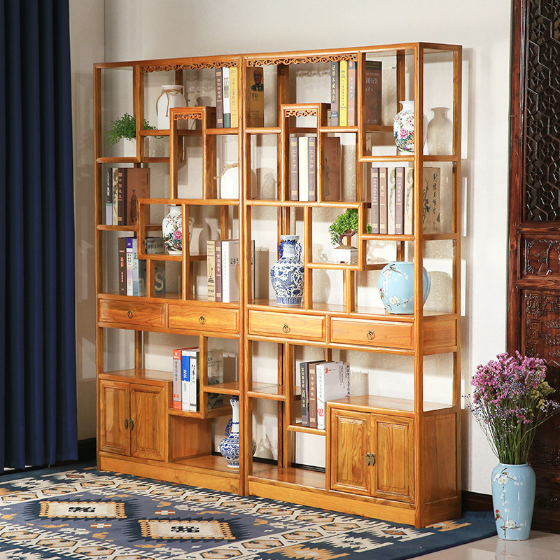 Bogu shelf all solid wood new Chinese elm living room tea tea set rack antique antique bookshelf Duobaoge display cabinet