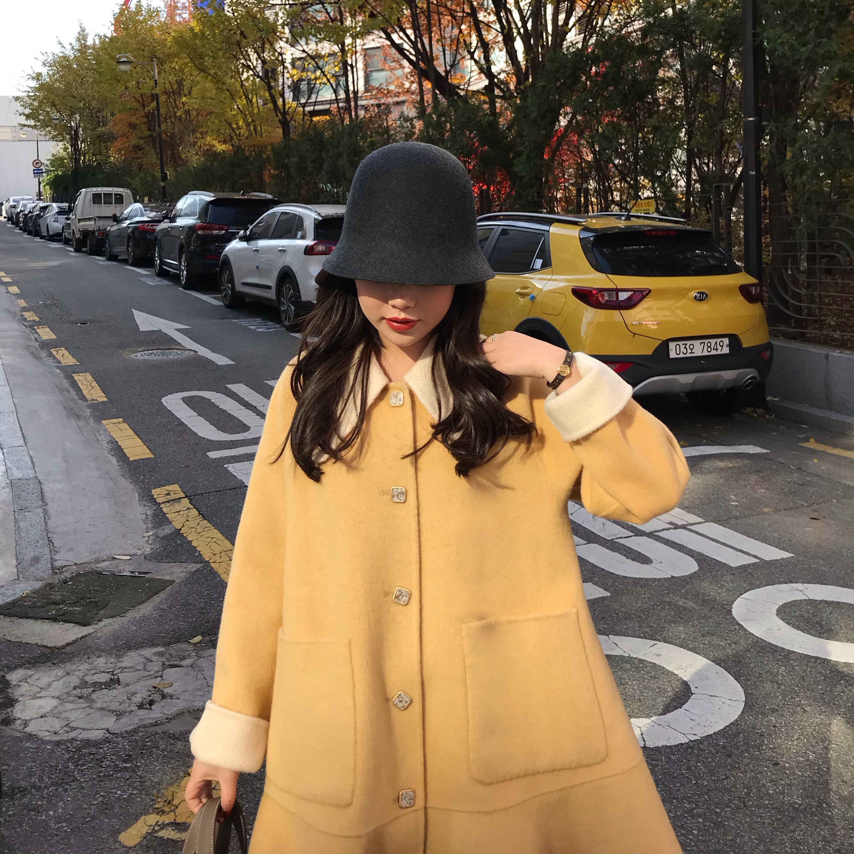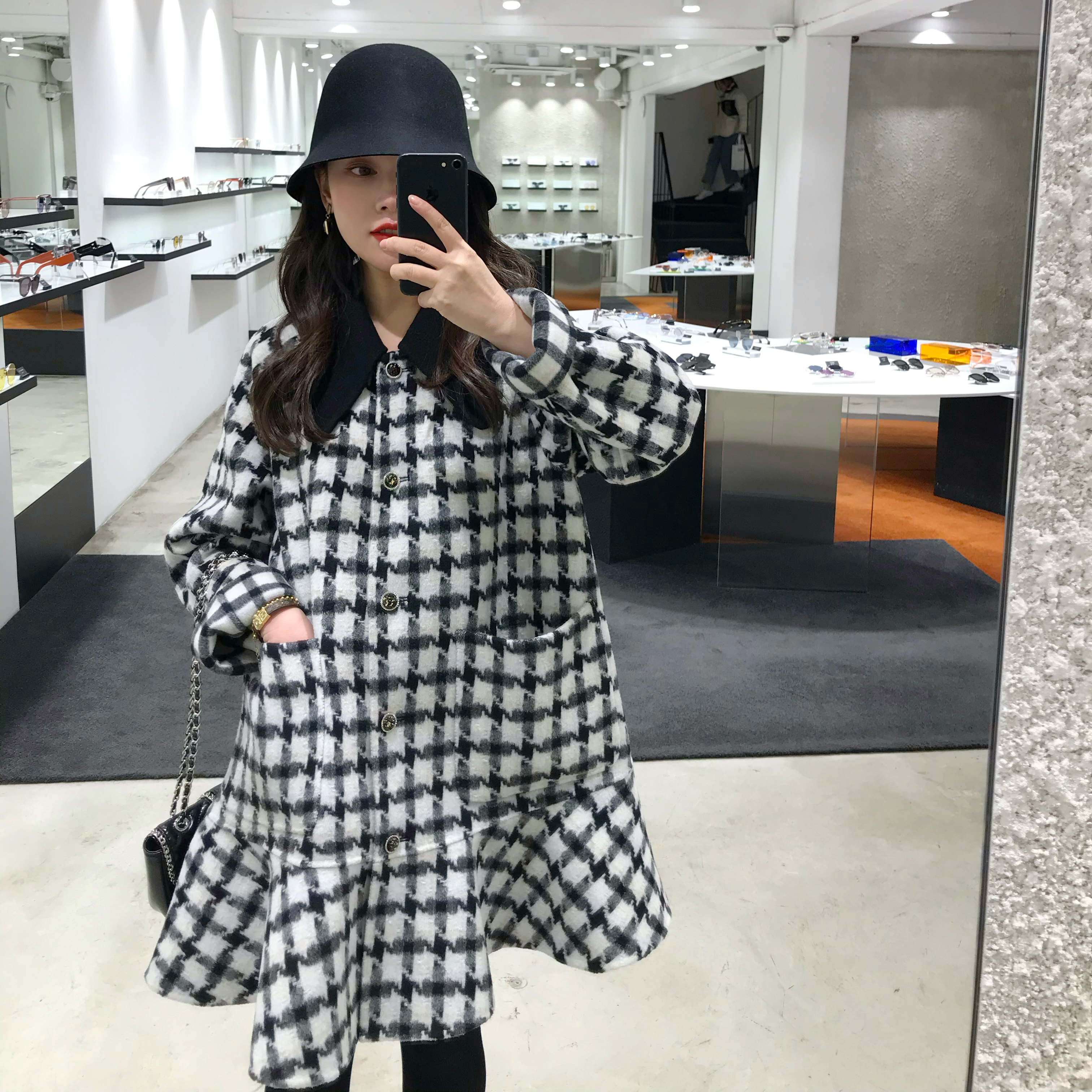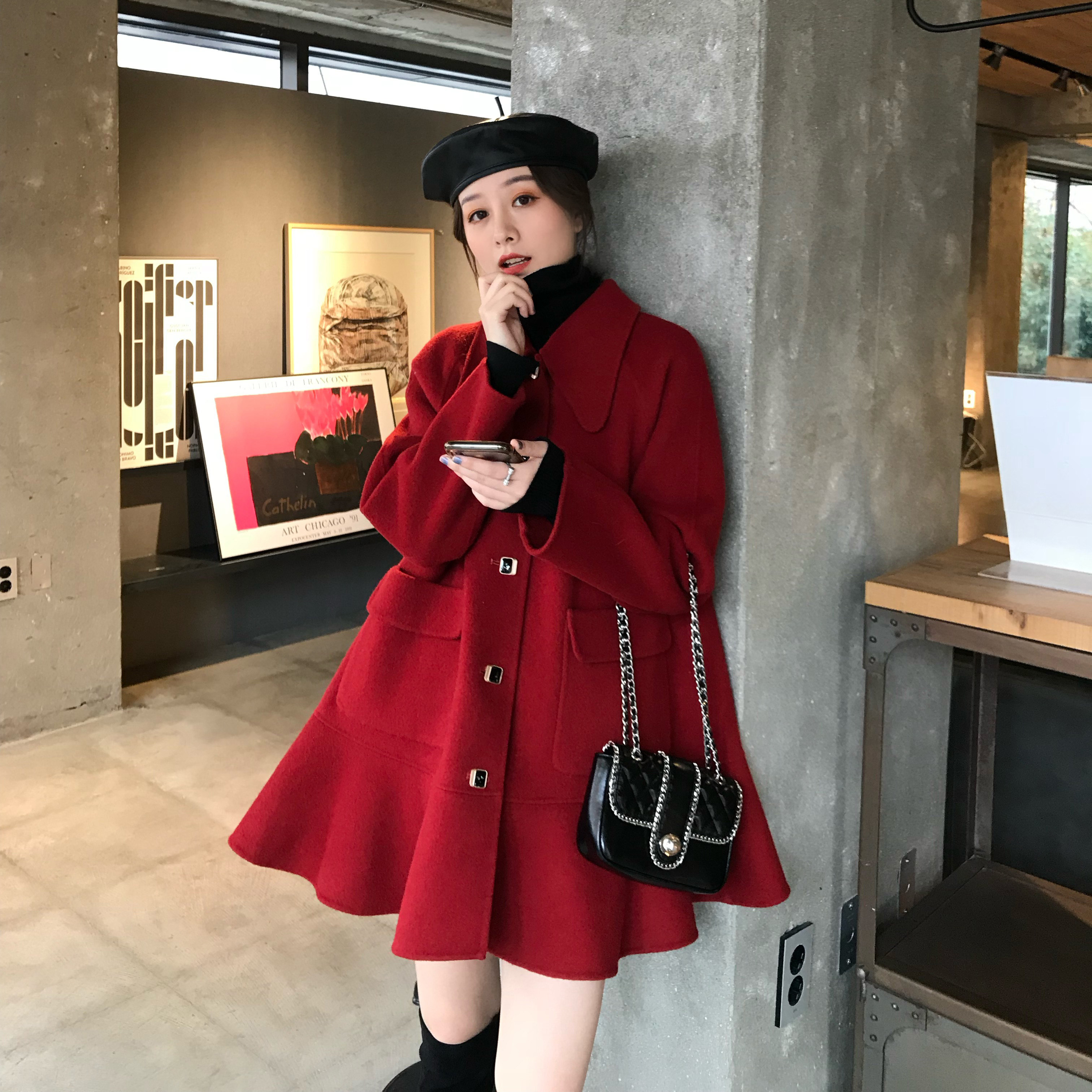 DALU small pointed collar plaid ruffled red woolen coat double-sided woolen coat women 2020 popular