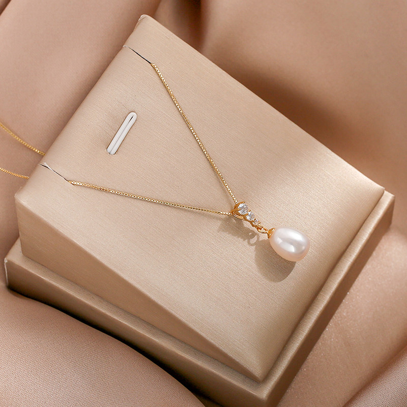 S925 Silver Natural Pearl Necklace Clock Chain 8 - 9mm Strong Light Single Pearl Day Gift