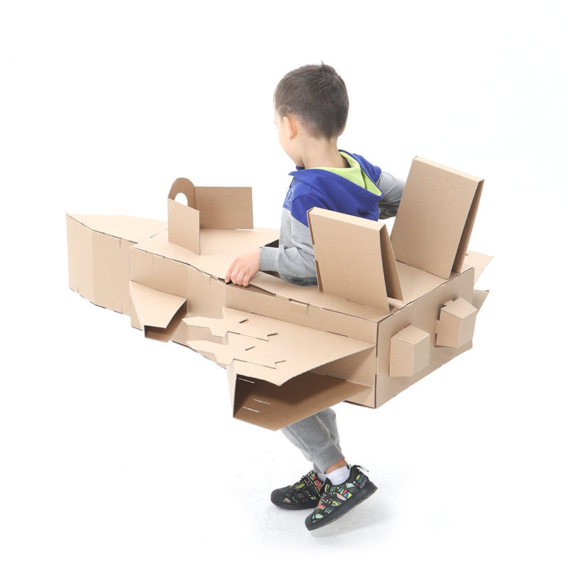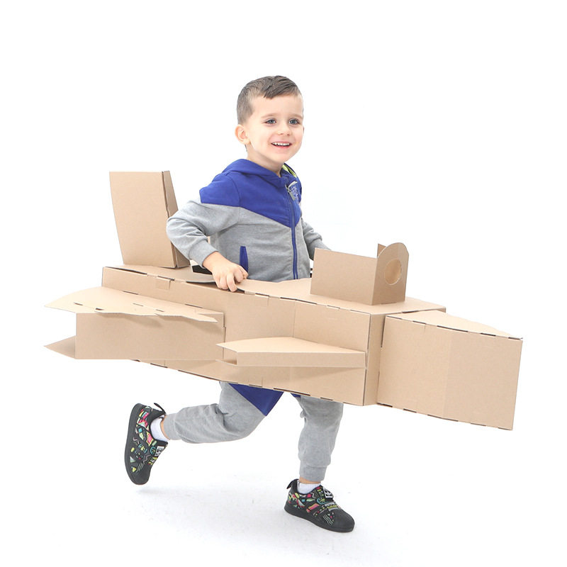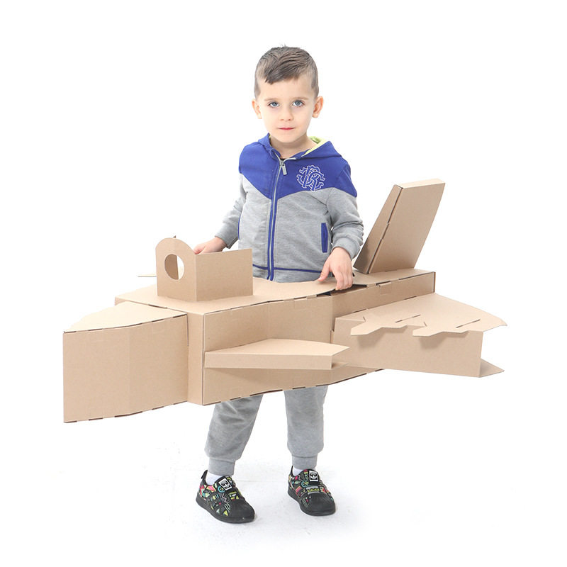 Kindergarten DIY aircraft assembly Graffiti cardboard Cardboard Unloading Fighter children handmade paper shells