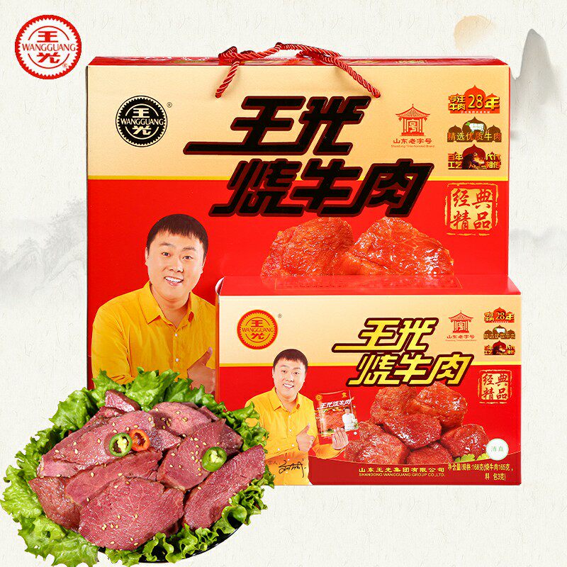 Wang Guang burned beef cooked vacuum Shandong Heze specialty produced five incense large hands tore ready - to - eat beef gift box 336g
