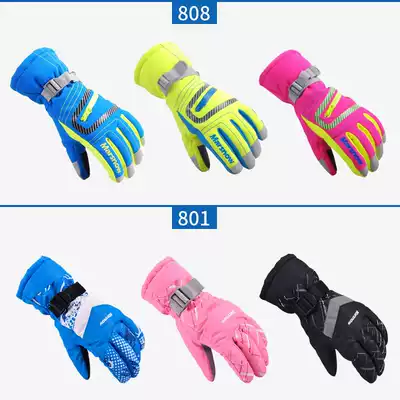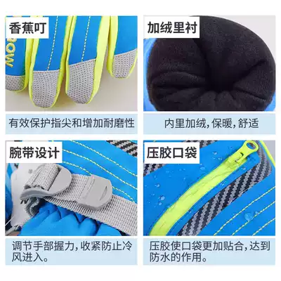 Ski gloves female outdoor men mountaineering winter warm thick cold proof waterproof wind adult children riding gloves