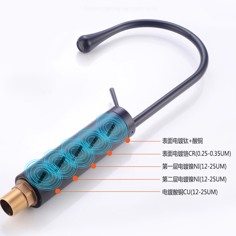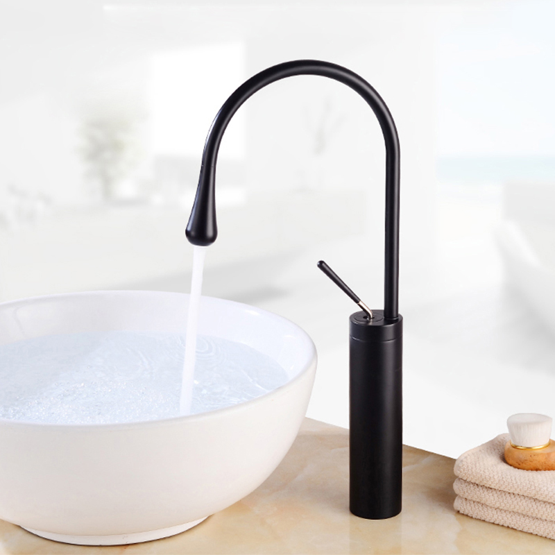 Black hand wash basin tap hot and cold full copper household face basin single holes plus high splash water kitchen faucet can be rotated
