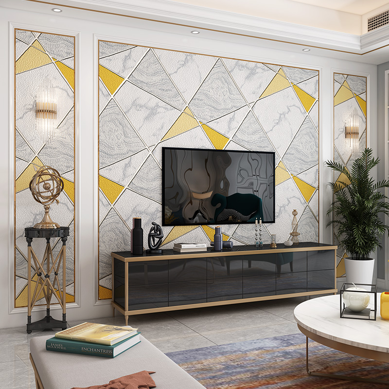 Modern simple living room TV background wallpaper 3D three-dimensional geometric film and television wall decoration non-woven wallpaper deerskin velvet