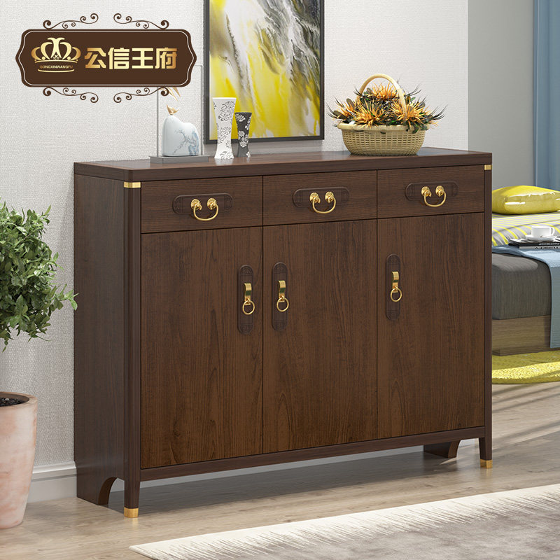 New Chinese shoe cabinet Household door entrance cabinet Solid wood frame storage cabinet Simple modern large capacity foyer shoe cabinet