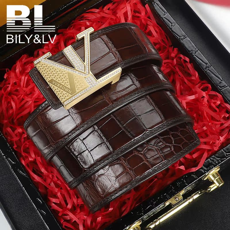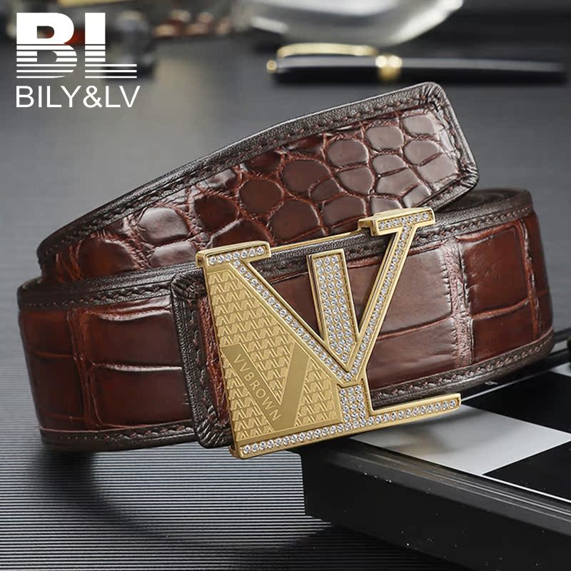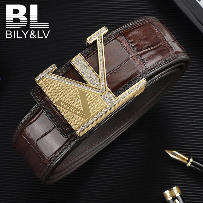 Bily&lv Avocado Leather Strap Men Luxurious Medium Youth Pants With Stainless Steel Smooth Buckle Pants Belt Male Dermis