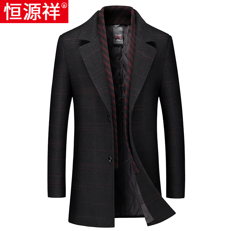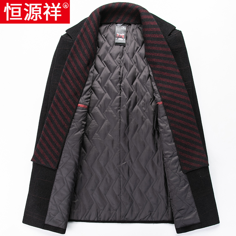 Hengyuanxiang woolen coat men's mid-length detachable scarf middle-aged thickened woolen windbreaker warm winter coat