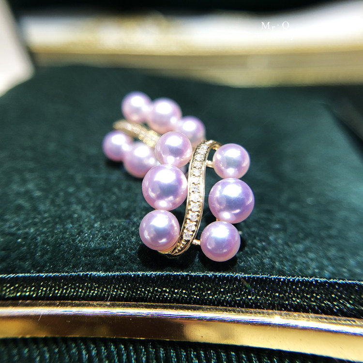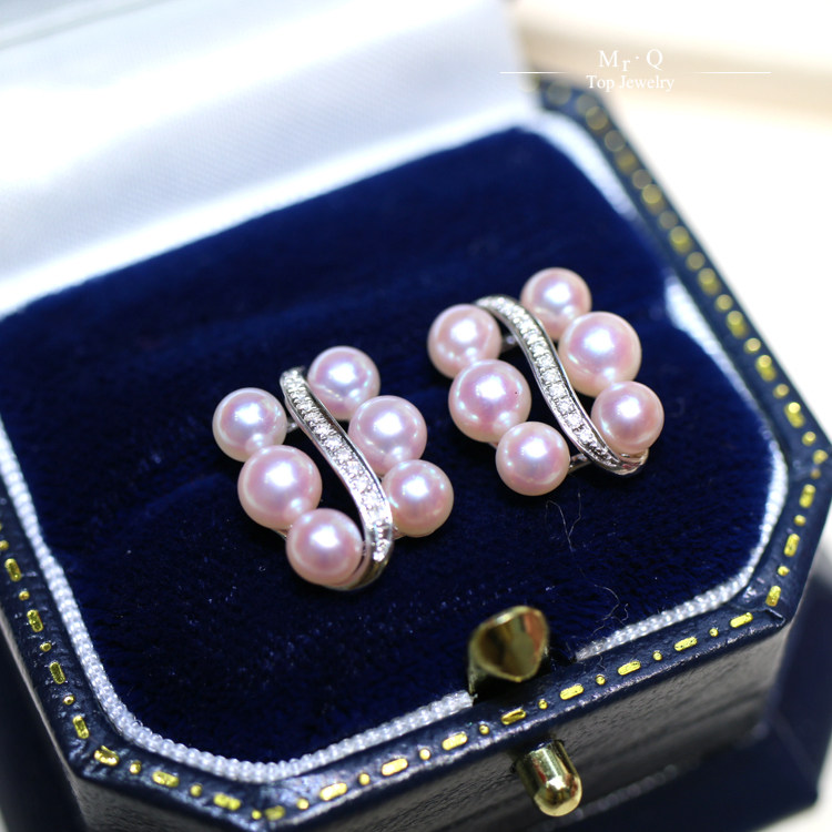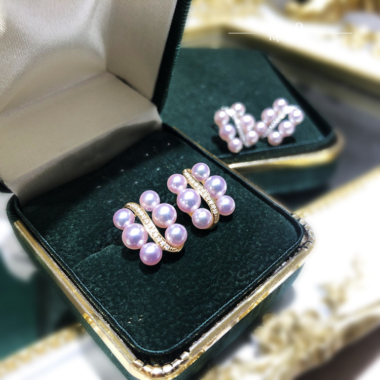 (Ruoshui) 18K gold Japanese seawater akoya pearl earrings aurora white transparent pastel pearl diamond earrings