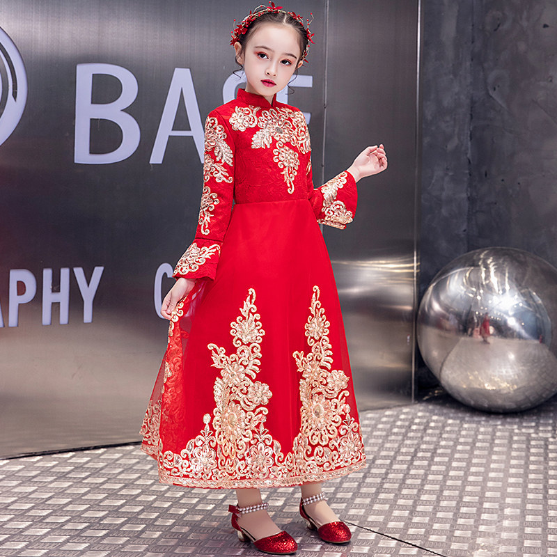 Red girl's year to wear winter thickened 2019 mid-year National Wind New Year dress Princess Skirt Improved Qipao