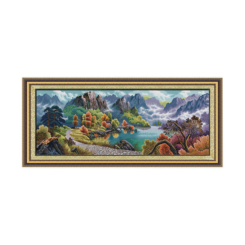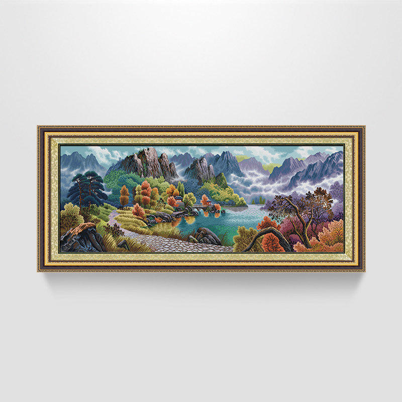 KS cross embroidered Chinese living room feng shui country painting full embroidered scenery polyppot poly Xiang fortune and fortune