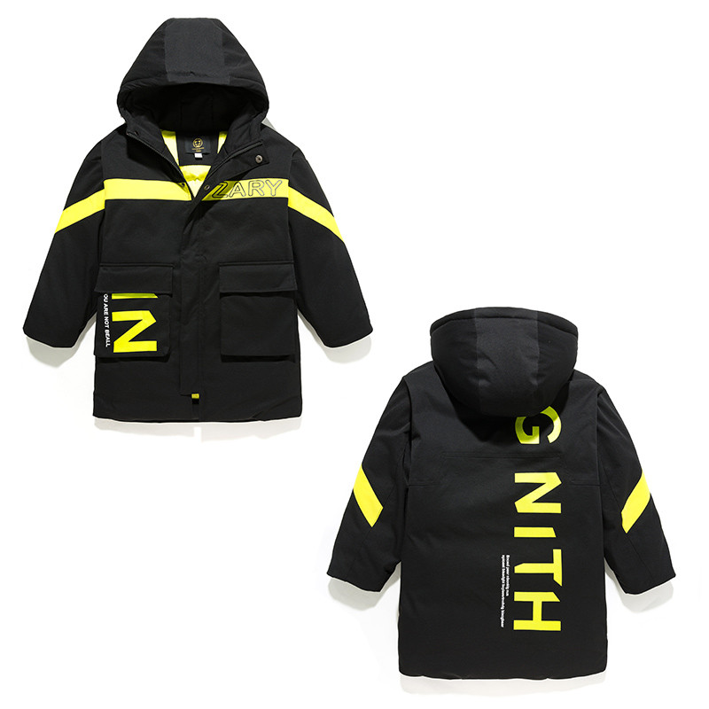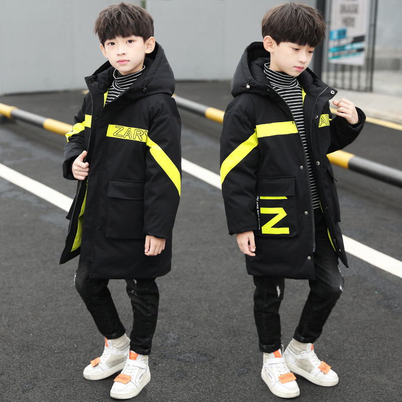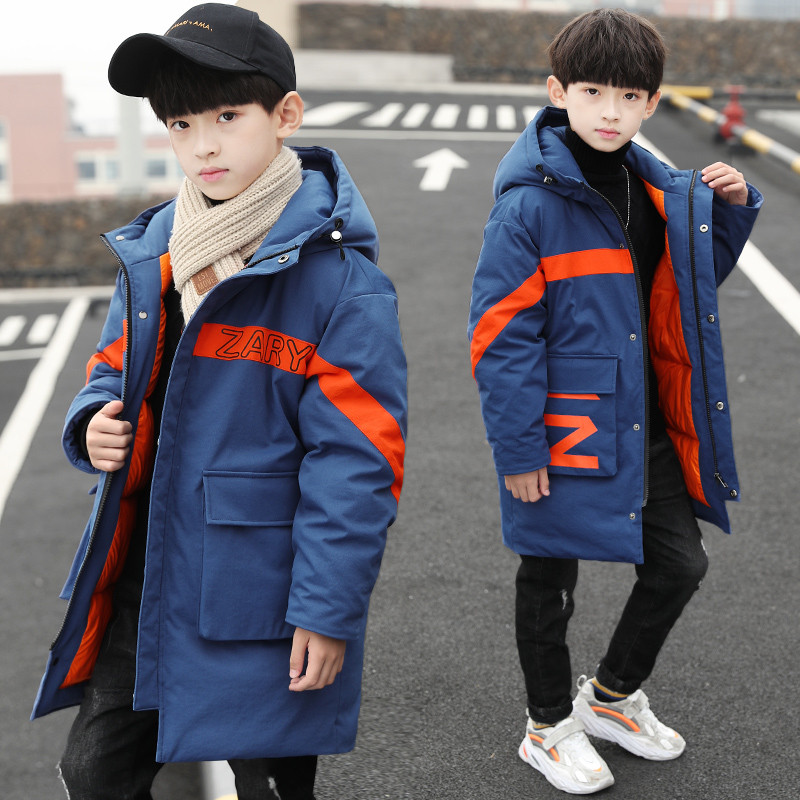 Children's suit boys winter cotton clothes 2022 new medium and large children medium long version thick down cotton jacket foreign pie tide