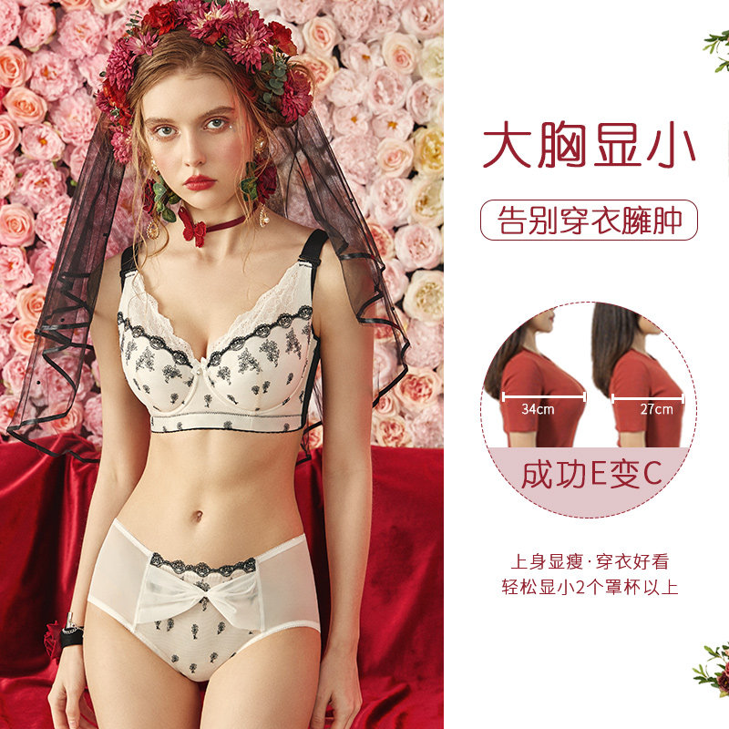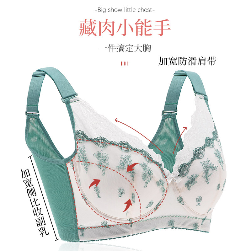 Plus size underwear women's breast reduction artifact big breasts look small sexy thin section push up adjustable bra