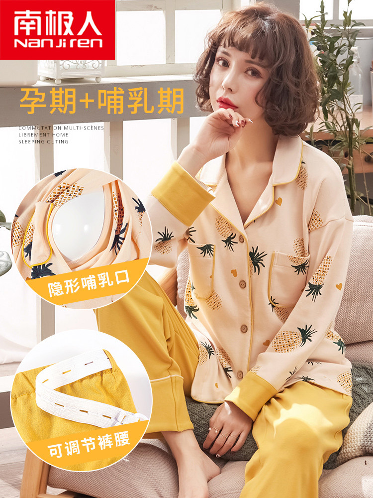Nanjiren confinement clothes spring and autumn pure cotton postpartum breastfeeding pajamas for pregnant women summer maternity feeding suits