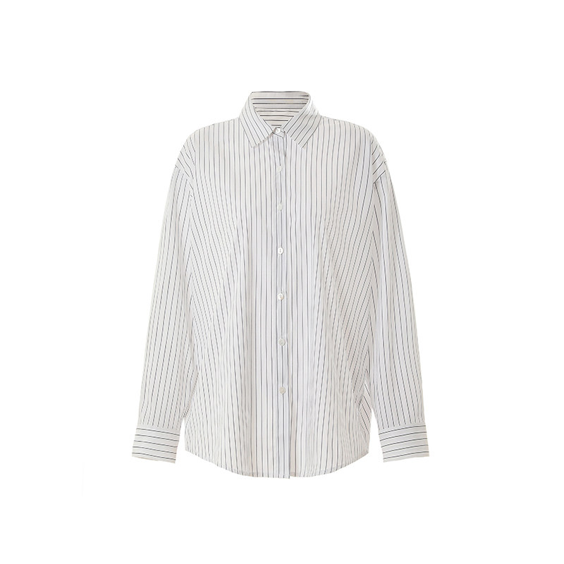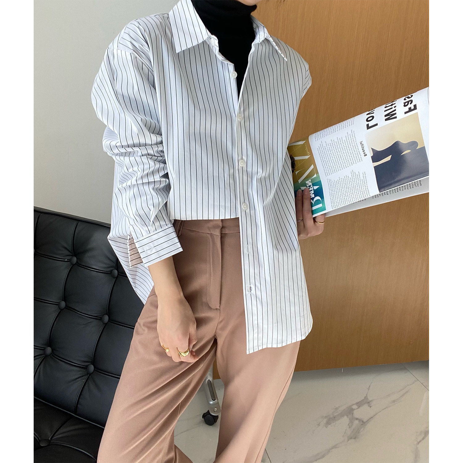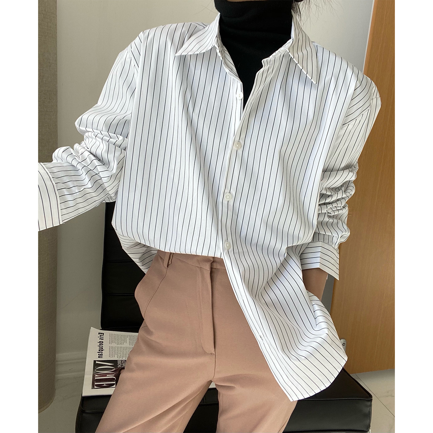 Design sense Little Korean version Loose Shirt Woman Long Sleeve 100 Hitch Spring Autumn Oversize Fine Striped White Shirt Laminated