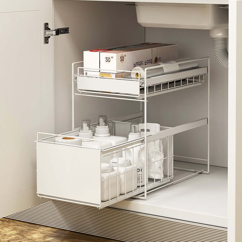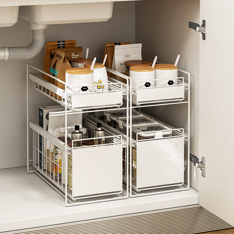 Pull-out rack under the sink white steel cabinet shelf kitchen seasoning multi-layer bathroom cabinet kitchen cabinet storage built-in