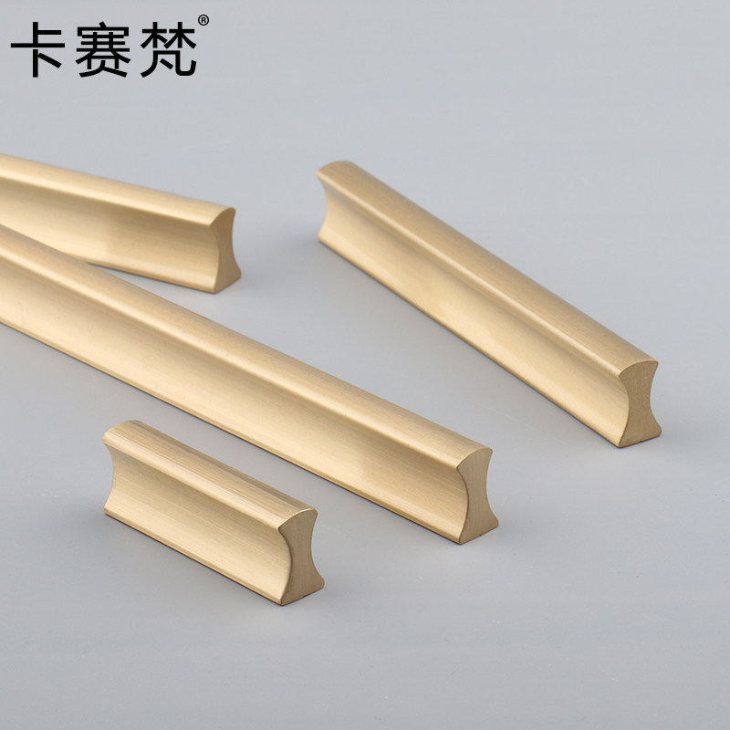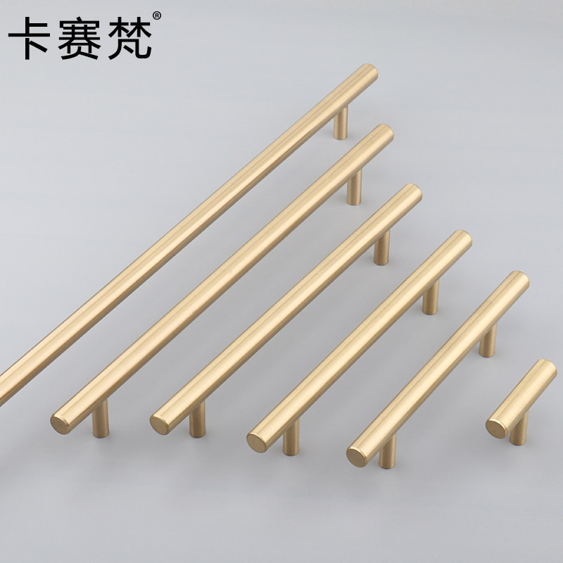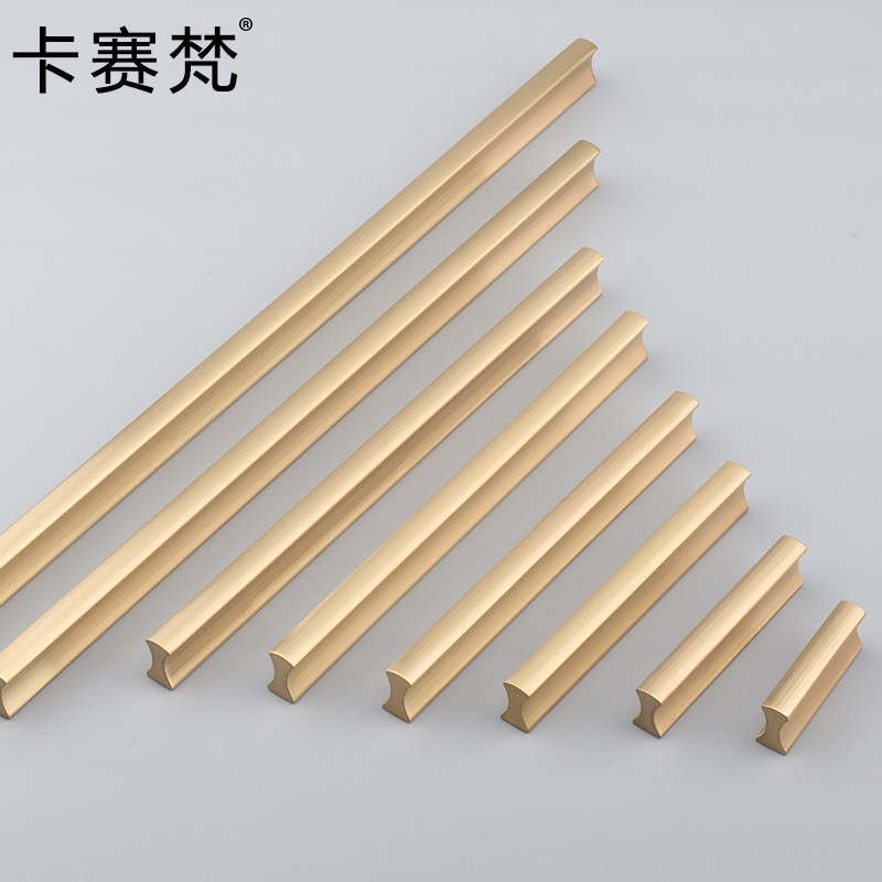 Nordic modern minimalist brass cabinet door handle straight strip lengthened single-hole integral cabinet American white wardrobe drawer handle