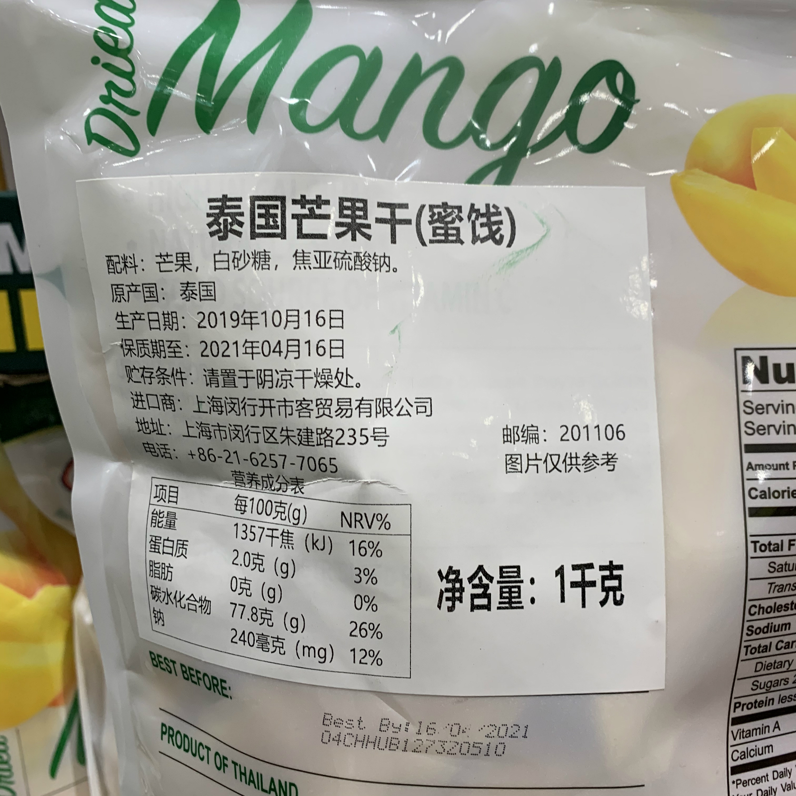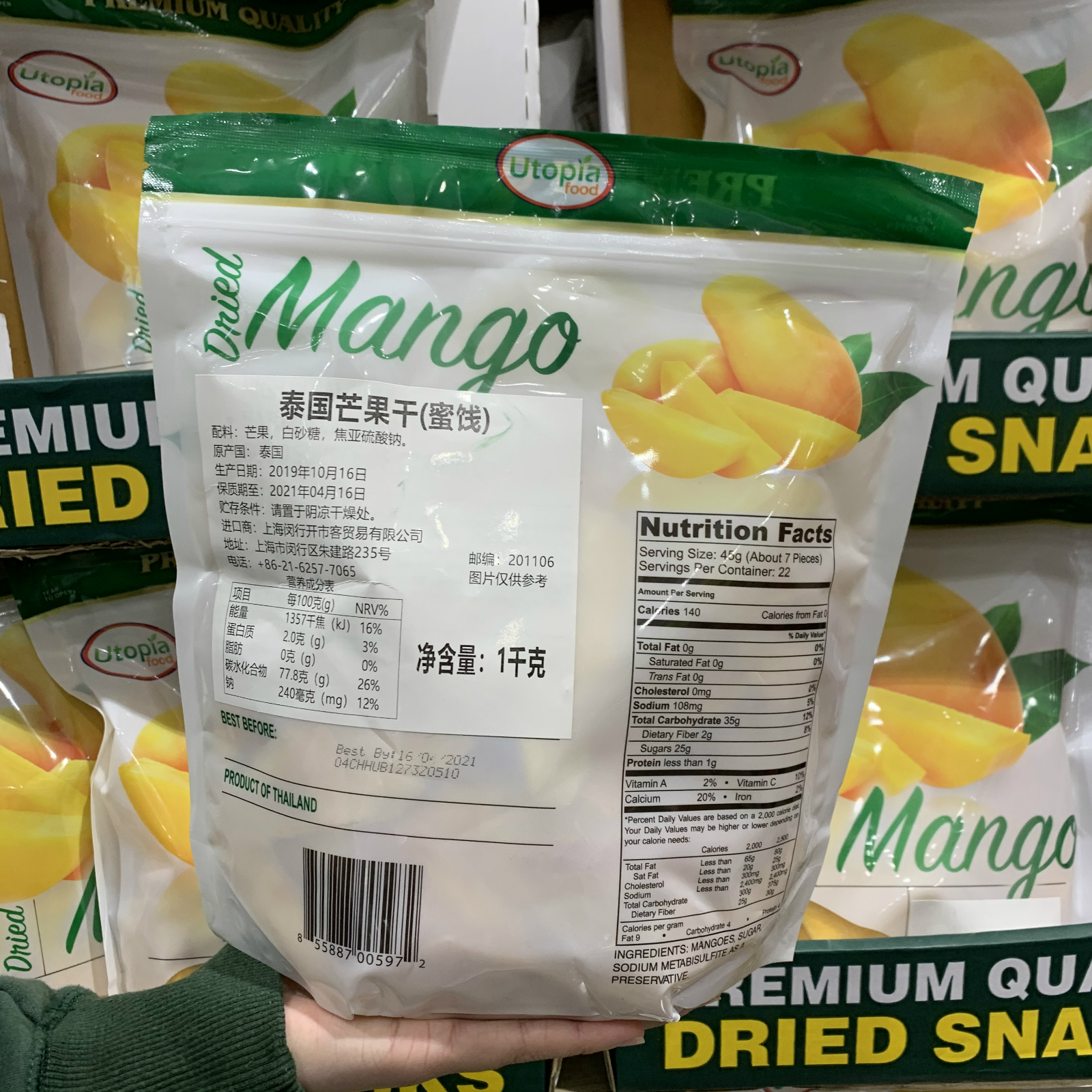 Shanghai costco Utopia food Thai dried mango candied fruit imported snacks 1kg