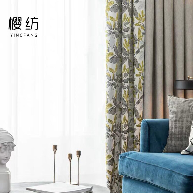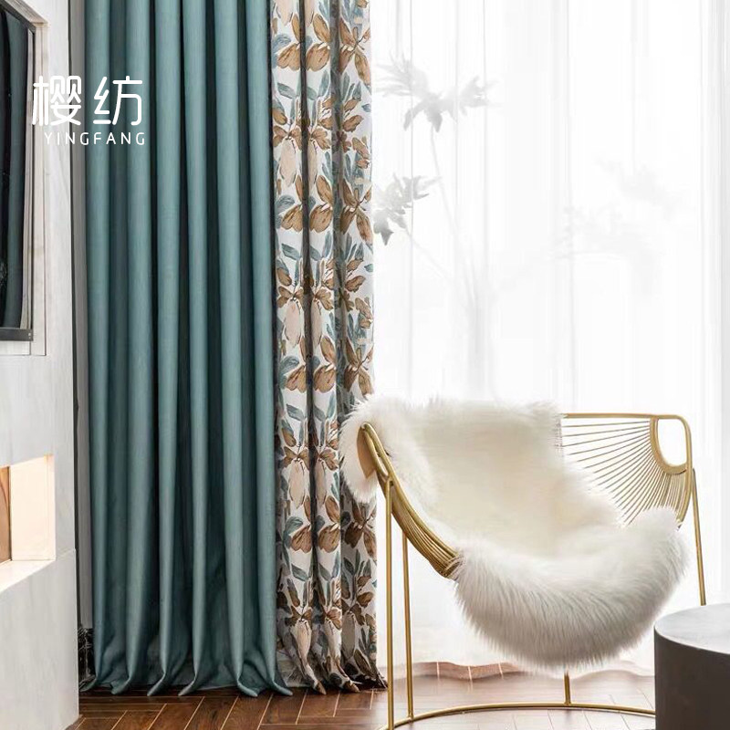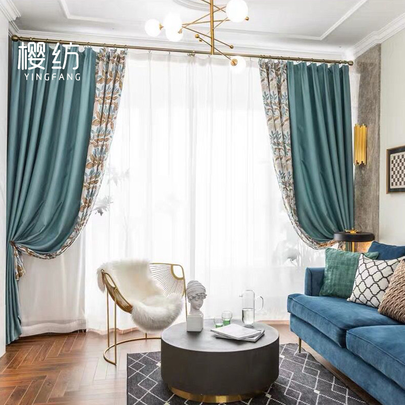 2019 new peacock blue floor-to-ceiling living room bedroom curtain Casablanc American Mediterranean curtain custom