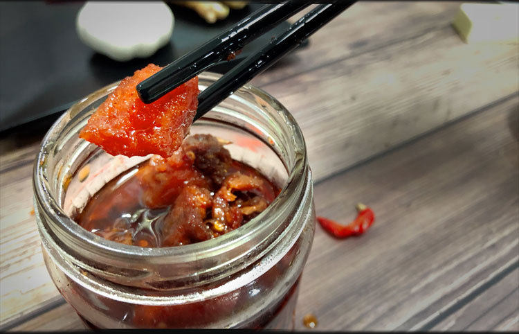 A spicy bottle of tempeh A bottle of tempeh