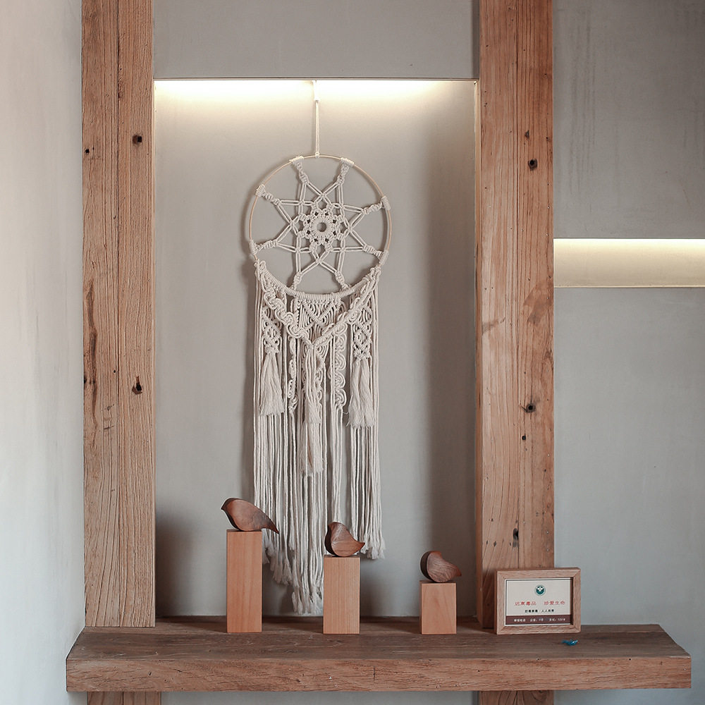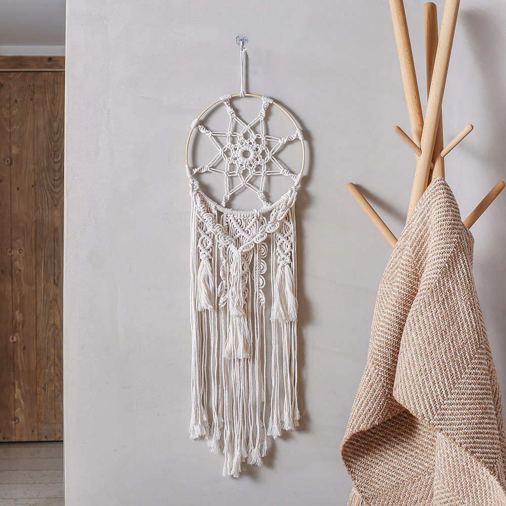 Handmade Material Bag Cotton Rope Woven Tapestry Nordic Catching Dreamnet Living Room Bedroom Hanging Accessories Folk Sleeping Background Decoration Wall-mounted
