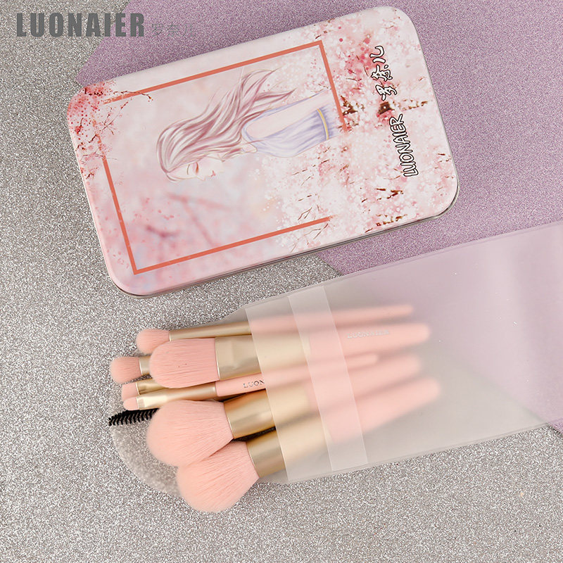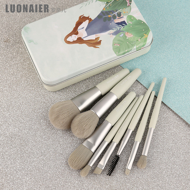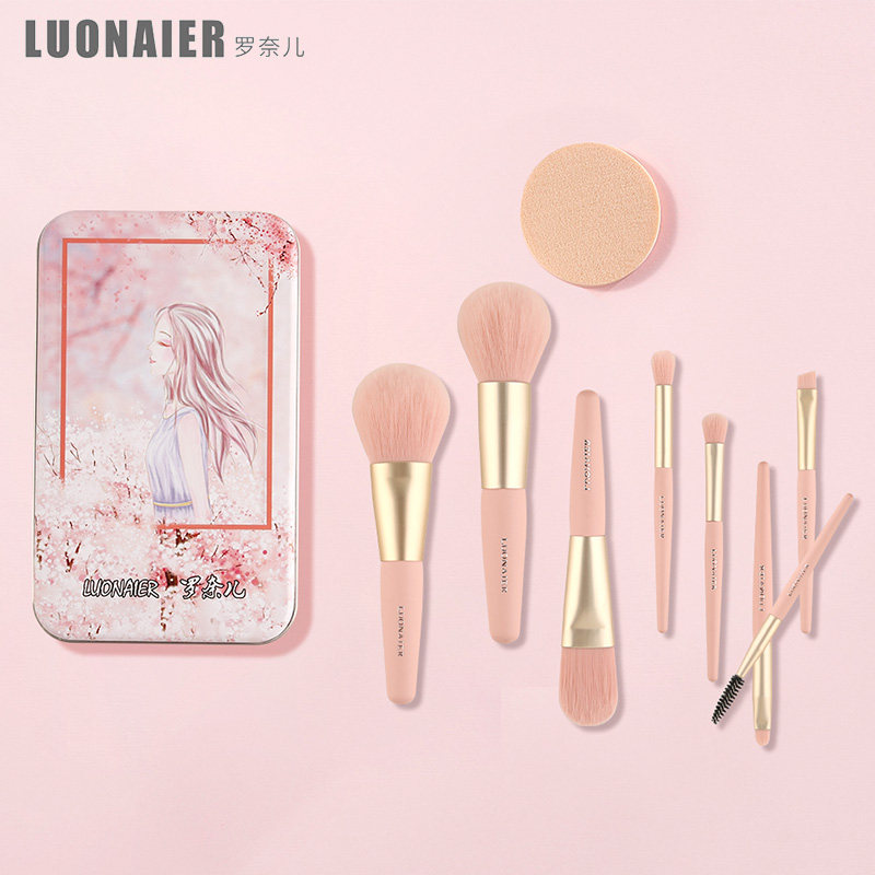 Short Mini Makeup Brush Set set of 8 sleeves Brushed iron case Eye Shadow blush powder Bottom Powder Brush full set of beginners portable