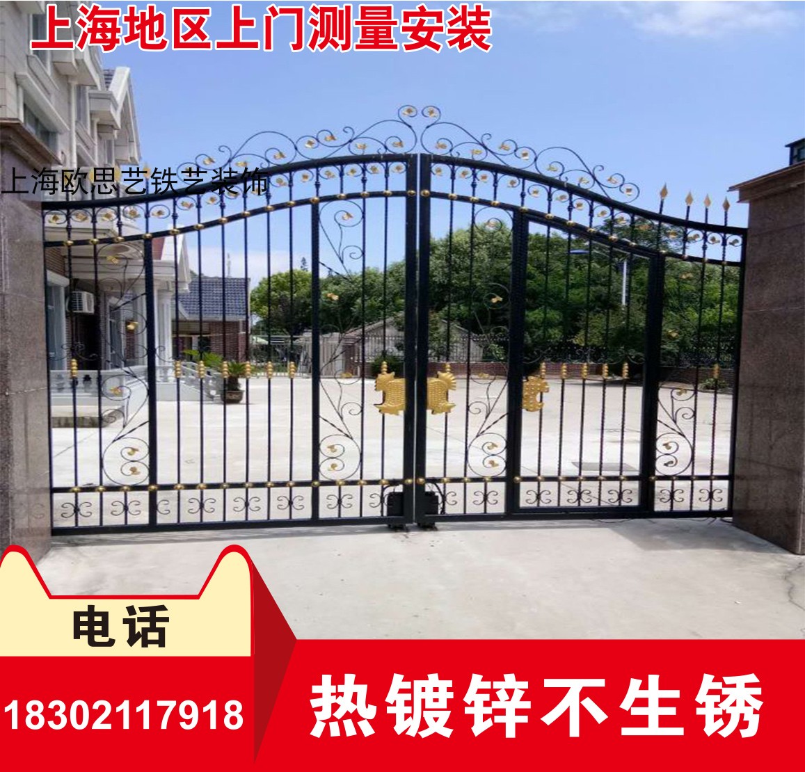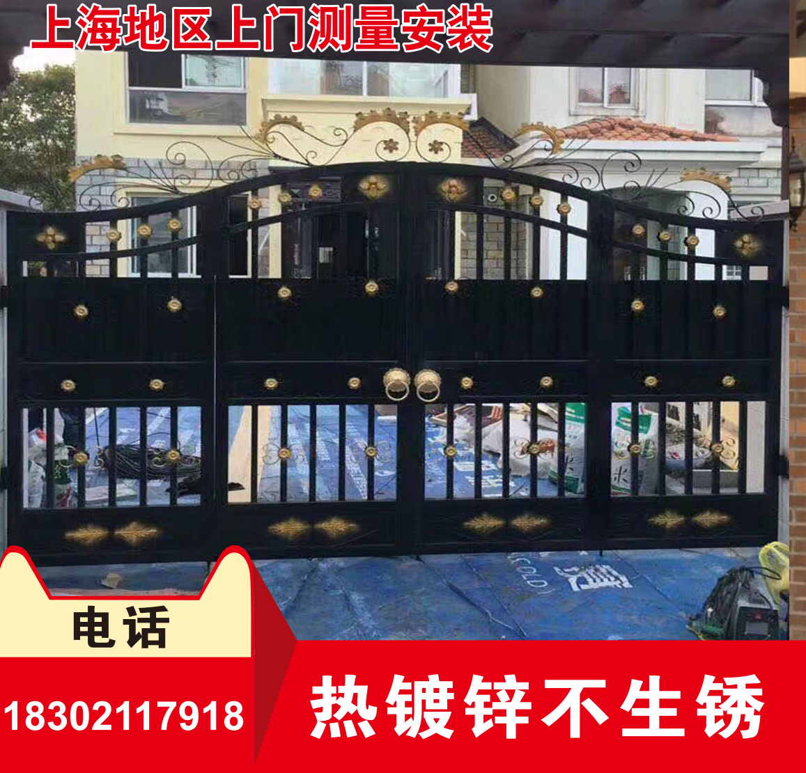 Shanghai Wrought iron gate Courtyard door Villa door Open door Wrought iron electric door Double door Community iron gate