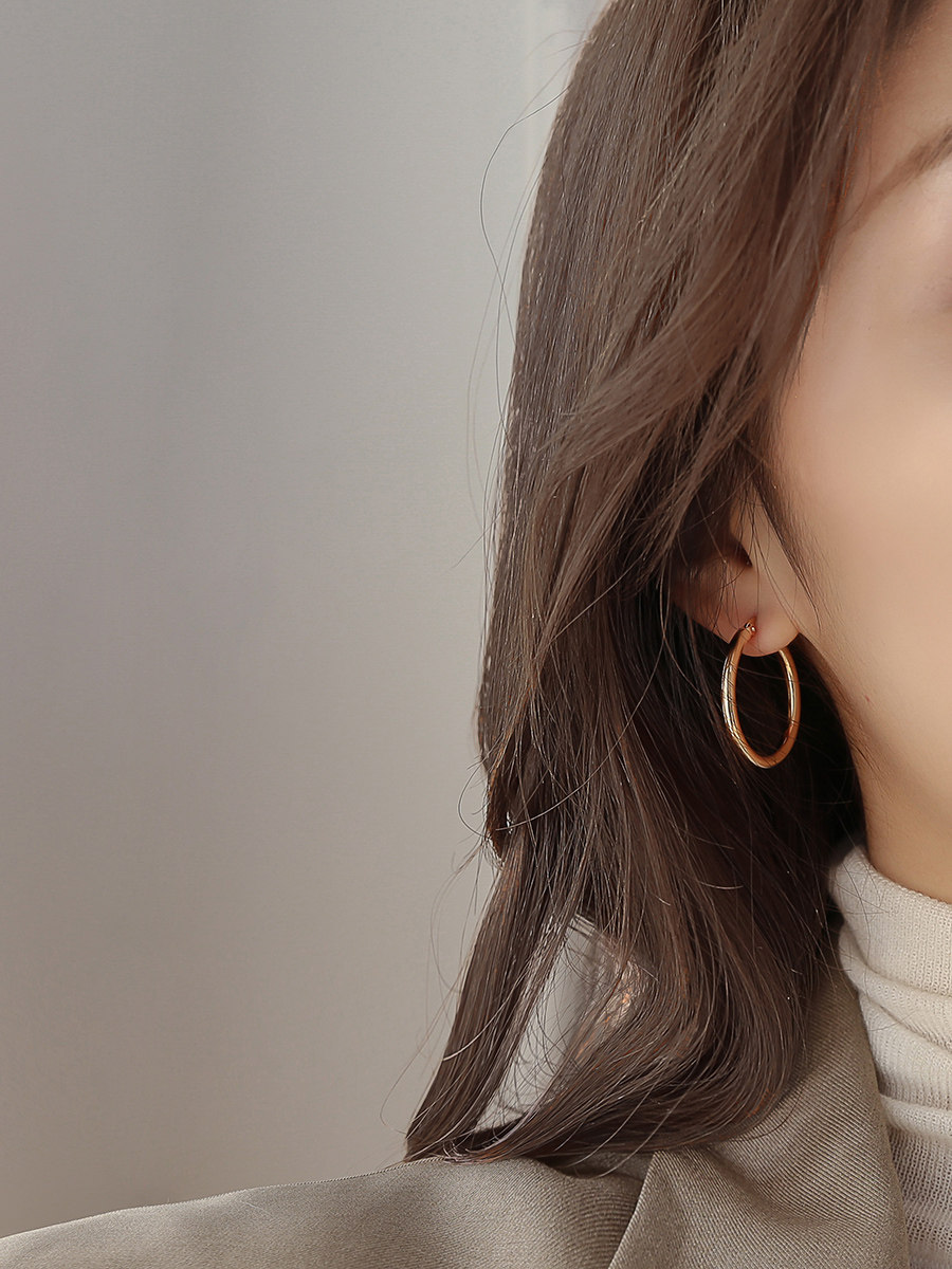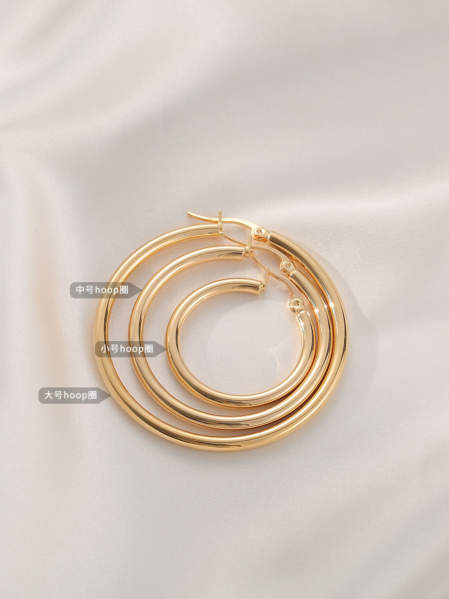 Gold-S925 silver needle (S925 silver needle) Gold-medium-mid-silver-needle(S925 silver needle) Gold-Large-large hoop ring(S925 silver needle)