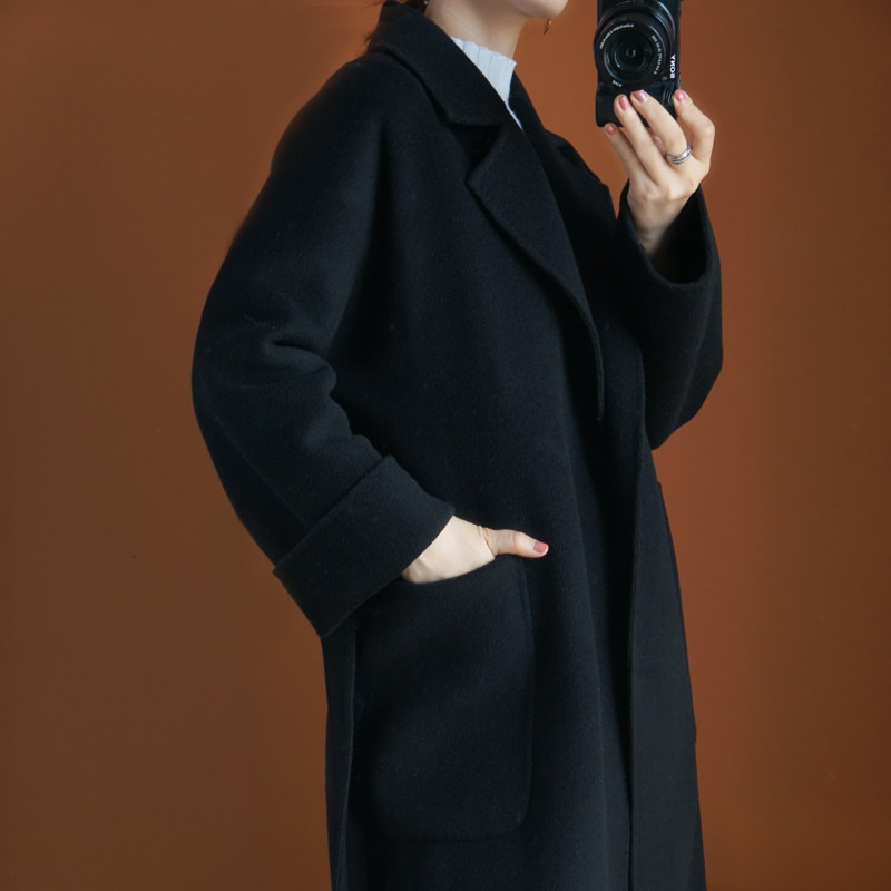 High level sense Korean ensemble gentle rice white bifacial cashmere Grand coat woman winter thickened with a long style of Hepburn Airy Coat-Taobao
