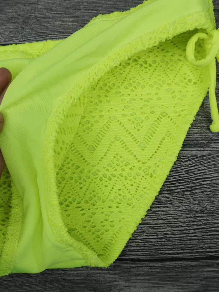 Knitting Lace Fluorescent Color Sense Split Lace Triangle Bikini Steel Nursery Thin Cups Big Breasts New Women Swimsuit