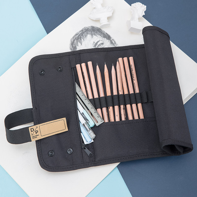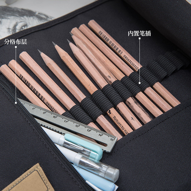Students with multi - functional 48 hole pen curtains large capacity retro black 36 pore painting fine - art pencil bag with a multi - pore pencil curtain
