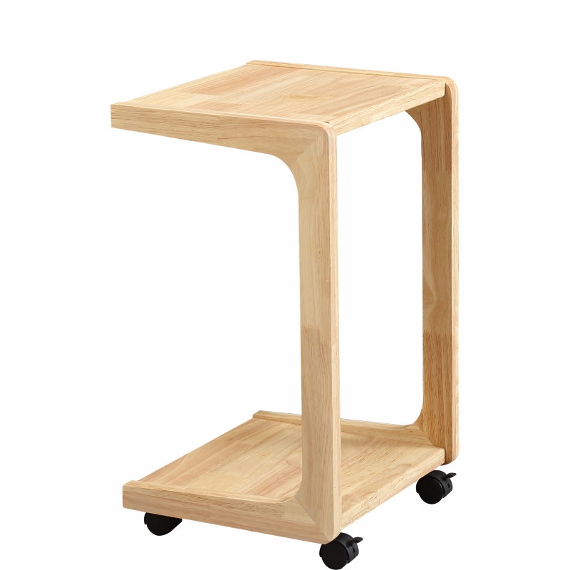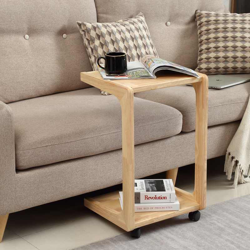Solid wood C-shaped movable roller sofa side table simple modern wheeled coffee table bedside table corner several small square coffee table
