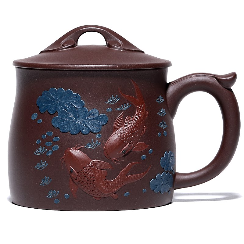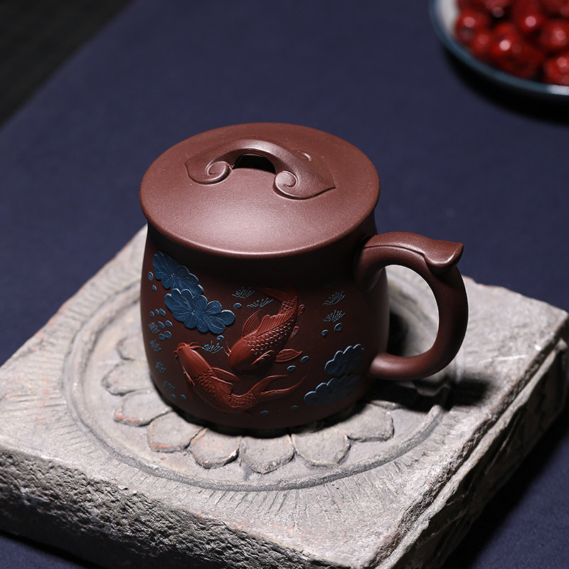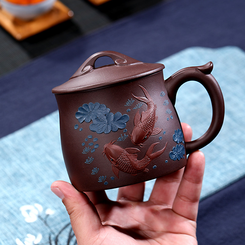 Purple sand cup Yixing purple sand pure handmade men and women household large capacity tea cup with lid lotus lotus fish