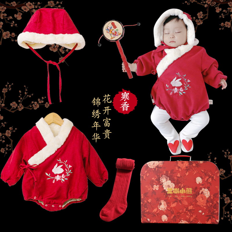 Newborn supplies Baby gift box Baby autumn and winter thickened warm jumpsuit Hayi Chinese style suit Year-old
