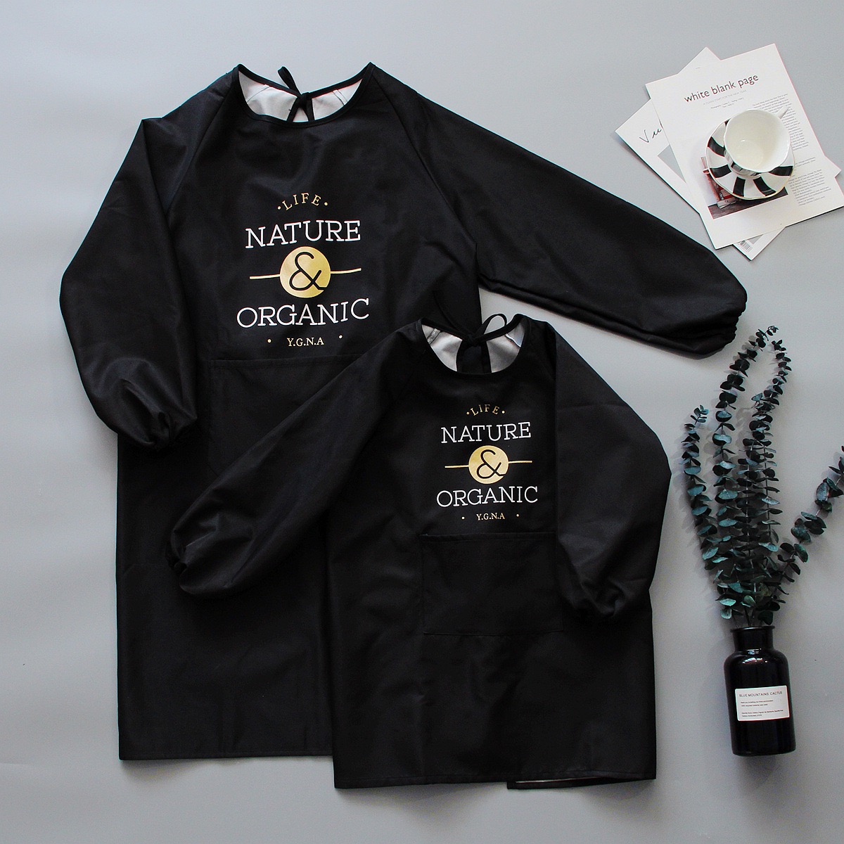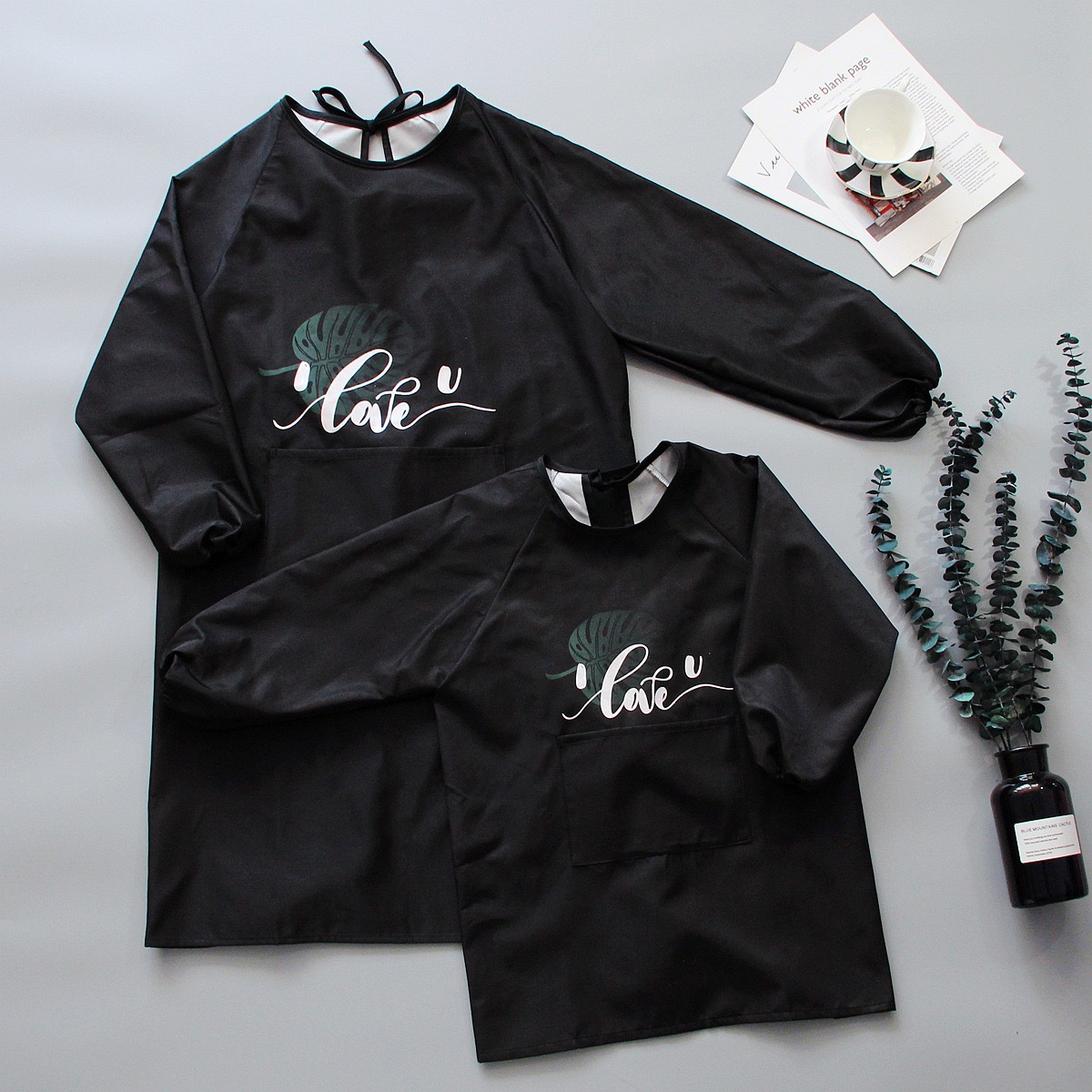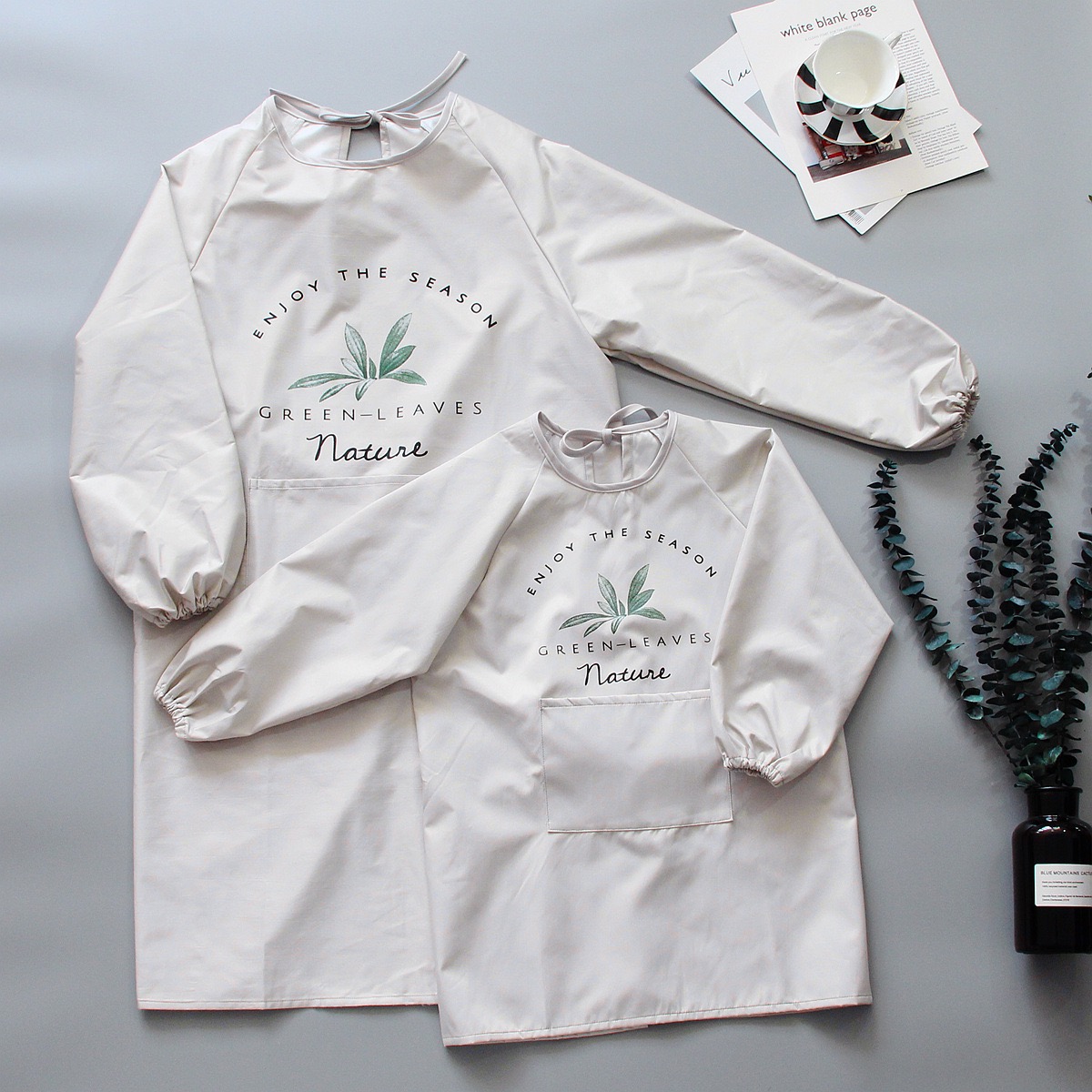 Apron women's fashion waterproof and oil-proof thin section breathable home kitchen cooking long-sleeved work clothes coveralls children's models