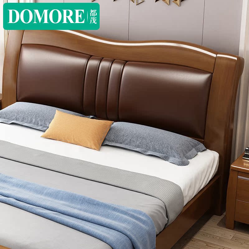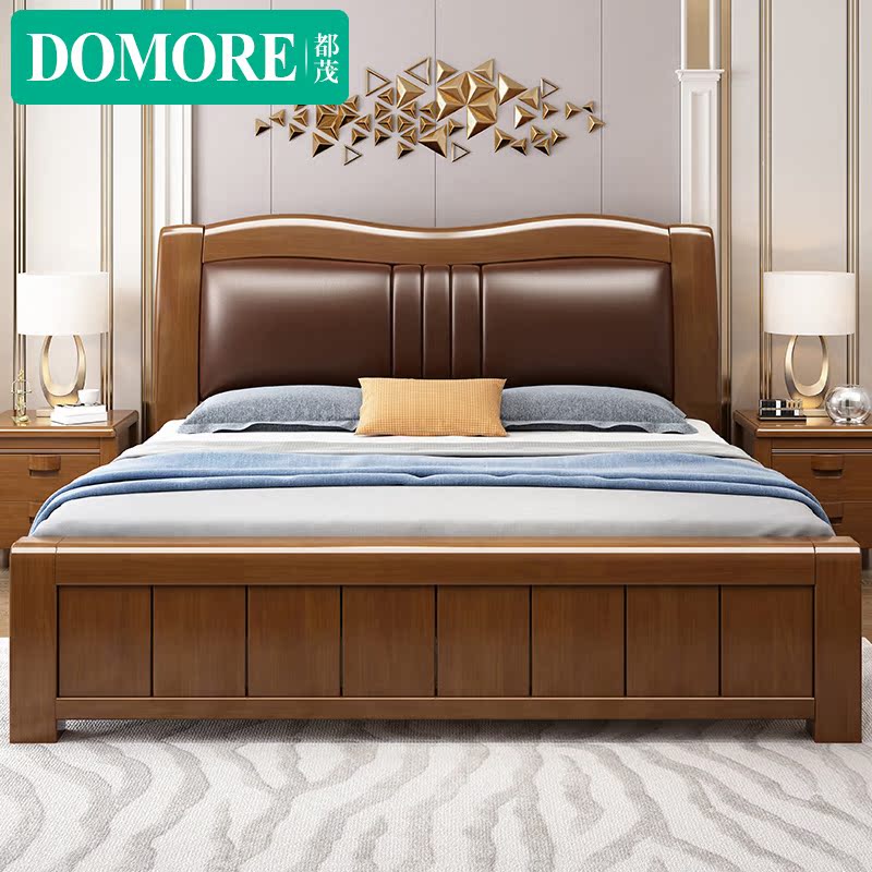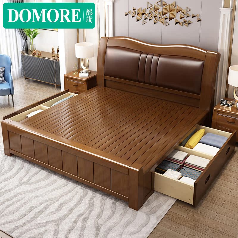 Modern minimalist master bedroom furniture solid wood bed 1 8m 1 5m Chinese style bedroom double soft bed air pressure high box