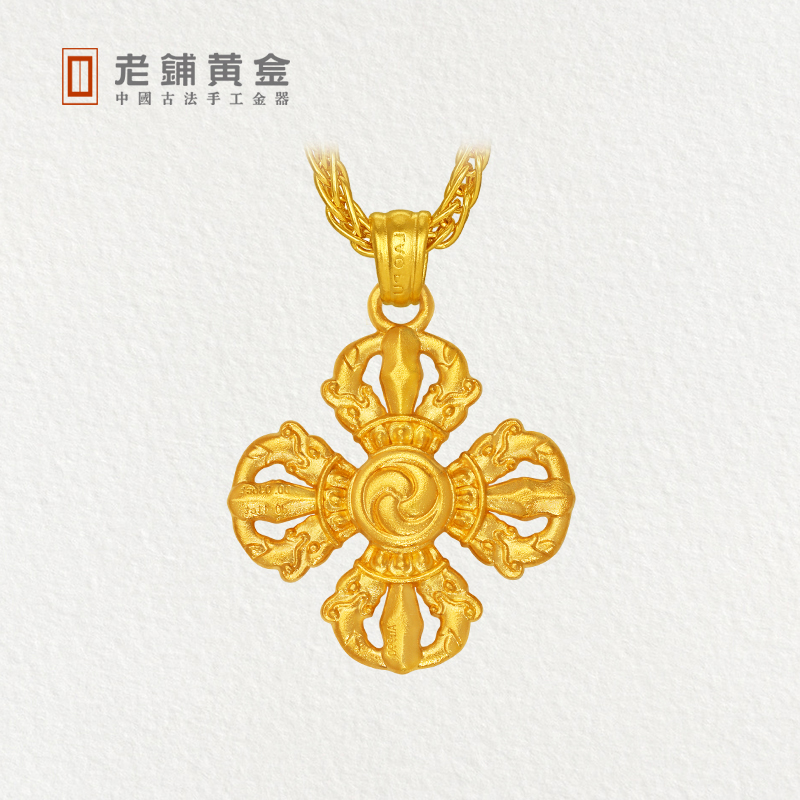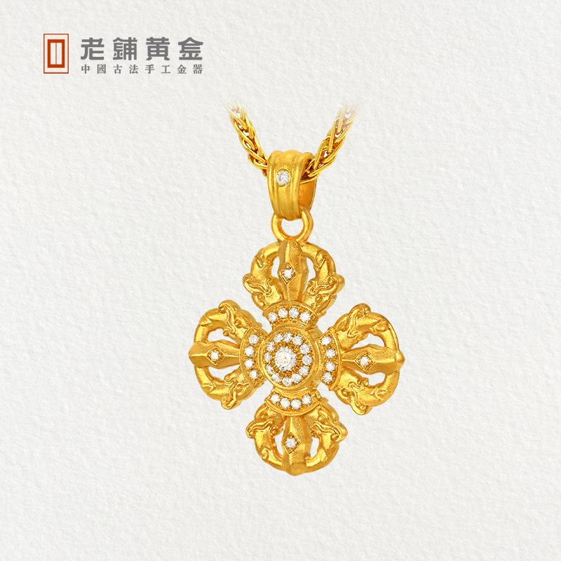 Old shop point diamond Ancient method hand-made Cross Vajra Full gold inlaid diamond pendant Gold necklace Jewelry