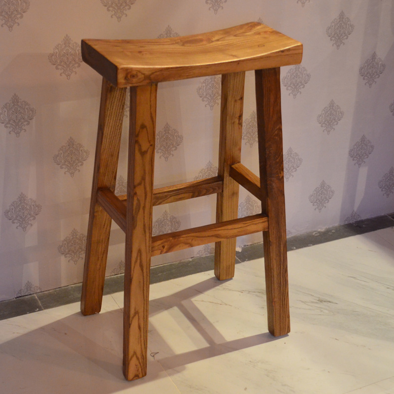 Solid Wood Household Elm Bar Stool High Foot Chair Bar Bench Bend Face Bar Stool log furniture YXR15-Taobao