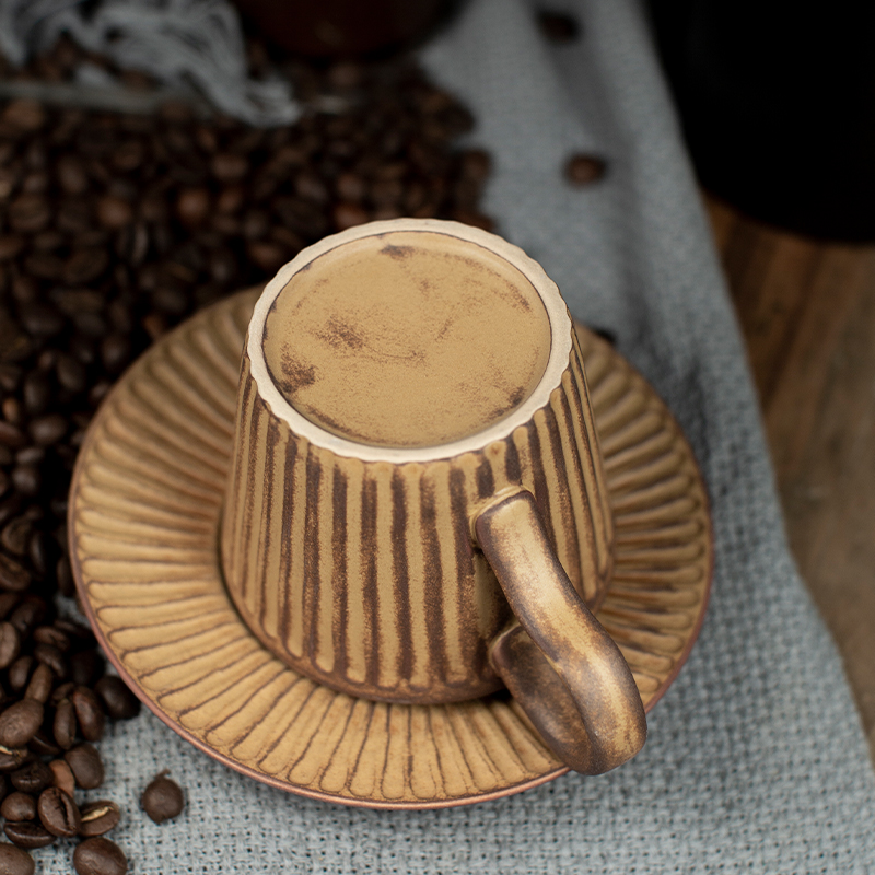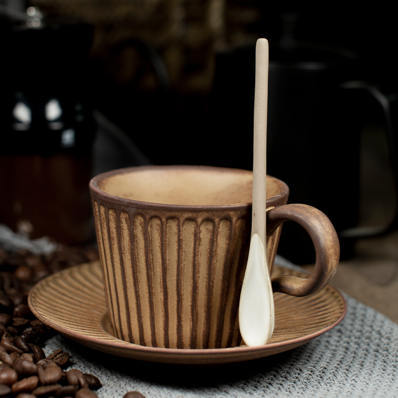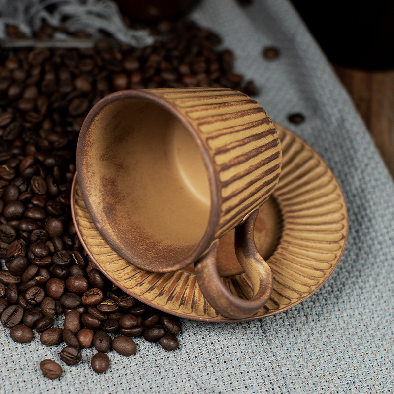 Day Style Retro Coffee Cup Personality Home Coarse Pottery Earl Hanging Coffee Cup With Saucer Minima Kiln Changing Water Mug 200ml