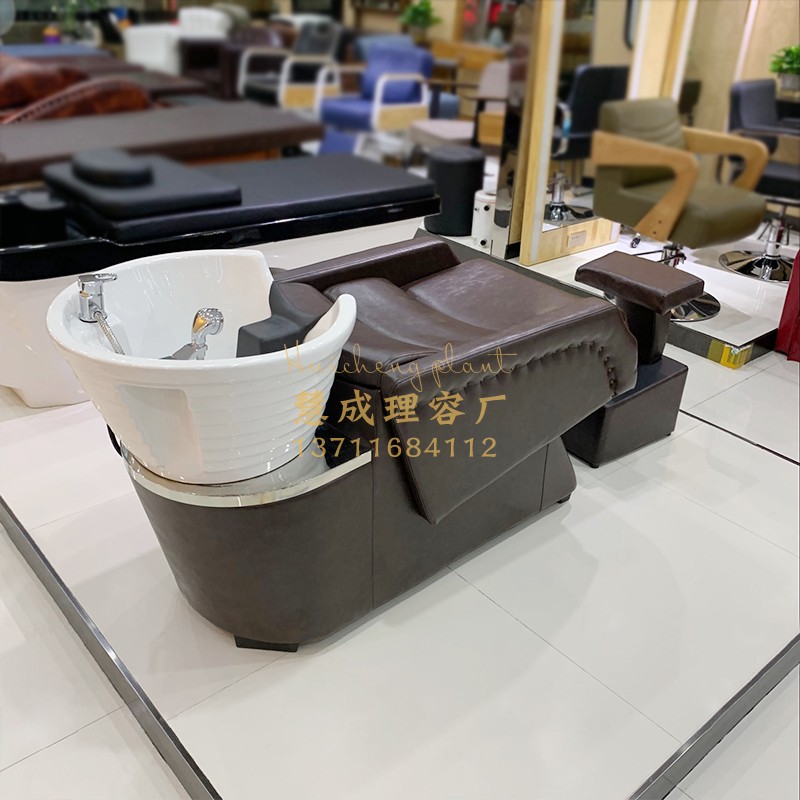 Hair Salon Direct Sale High-end Deep Ceramic Basin High Foot Half Lying Wash Head Bed Seat Style Beauty Cut Hair Shop Deep Basin Flush Water Bed