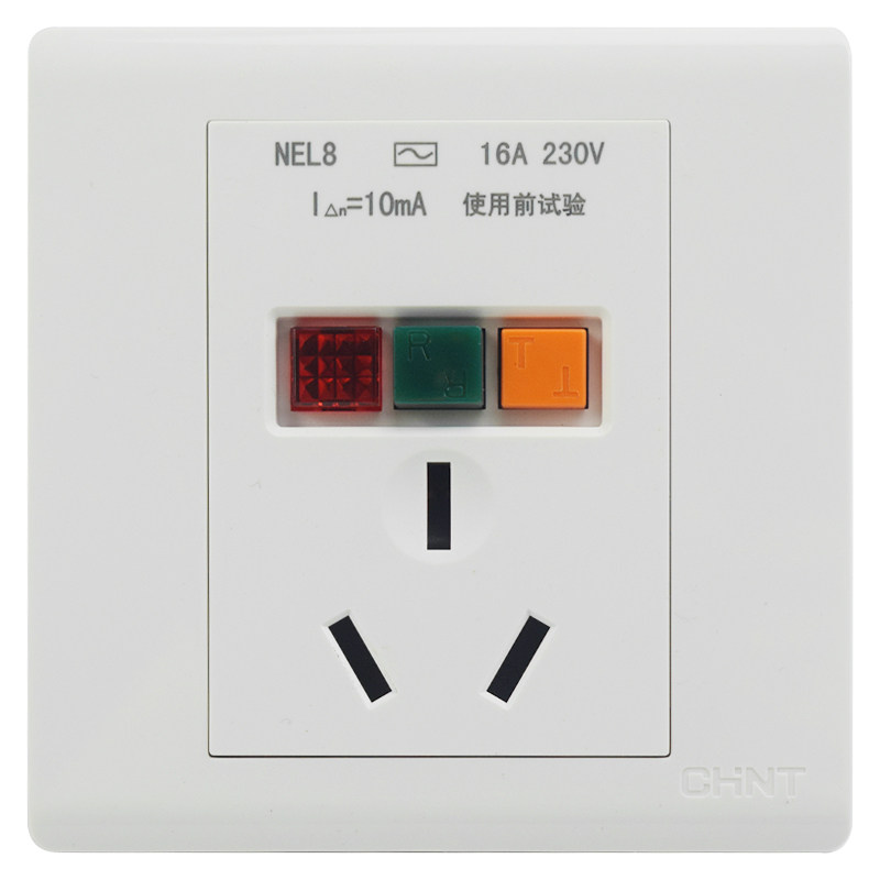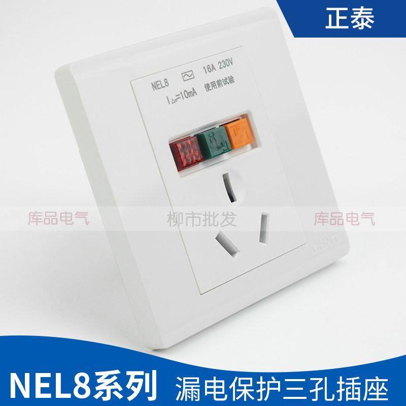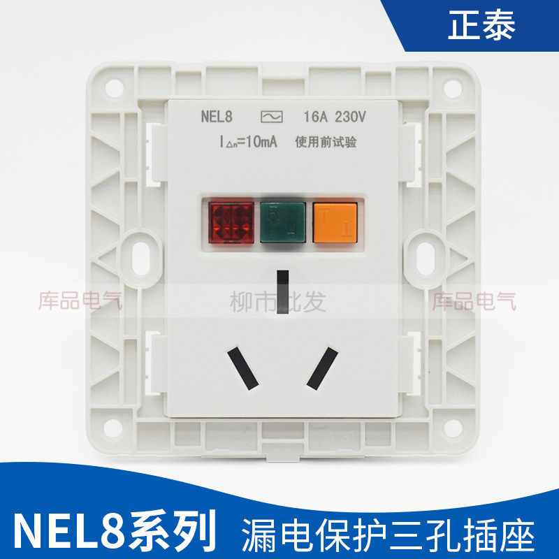 Zhengtai 86 Type of concealed earth leakage socket Three holes 16A Air conditioning Water heater High power NEL8-1020 Three inserts